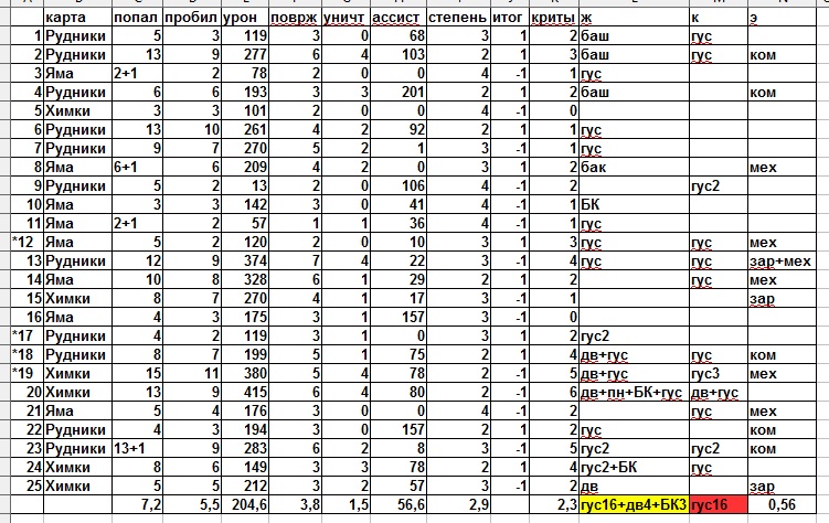 KPOT2338 Опубликовано: 2 декабря, 2017 Игроки 21 567 публикаций 38 512 боёв Жалоба Поделиться Опубликовано: 2 декабря, 2017 (изменено) По 25-ти боям на фугасахhttp://cdn-frm-eu.wargaming.net/wot/ru/uploads/monthly_12_2017/post-7033054-0-12562800-1512204984_thumb.jpg* - бои с двойкамиЧисло после крита - общее число одинаковых критов20-й бой проигрыш из-за фугасов точно4 попадания в стоящий бортом пулемётный ОЦУ в гуслюКроме ОЦУ оставался только какой-то полубот на горкеОба шотные22-й бой 3 пробития - 194 урона (без пожаров и взрывов)Вчера критовались башни, сегодня движкиз.ы.: За ешё 10 боёв 5 полукритов движков Изменено 2 декабря, 2017 пользователем KPOT2338 2 Что не делается, всё к лучшему! (с) Cos 700=0.3420, Cos 850=0.0872Кто нибудь привяжите его руки к подлокотникам, и клавиатуру у него заберите. И вообще любое устройство с которого можно печатать. (с) kojot7Введите уже артприцел для всей техники Ссылка на комментарий Поделиться на других сайтах Другие способы поделиться...