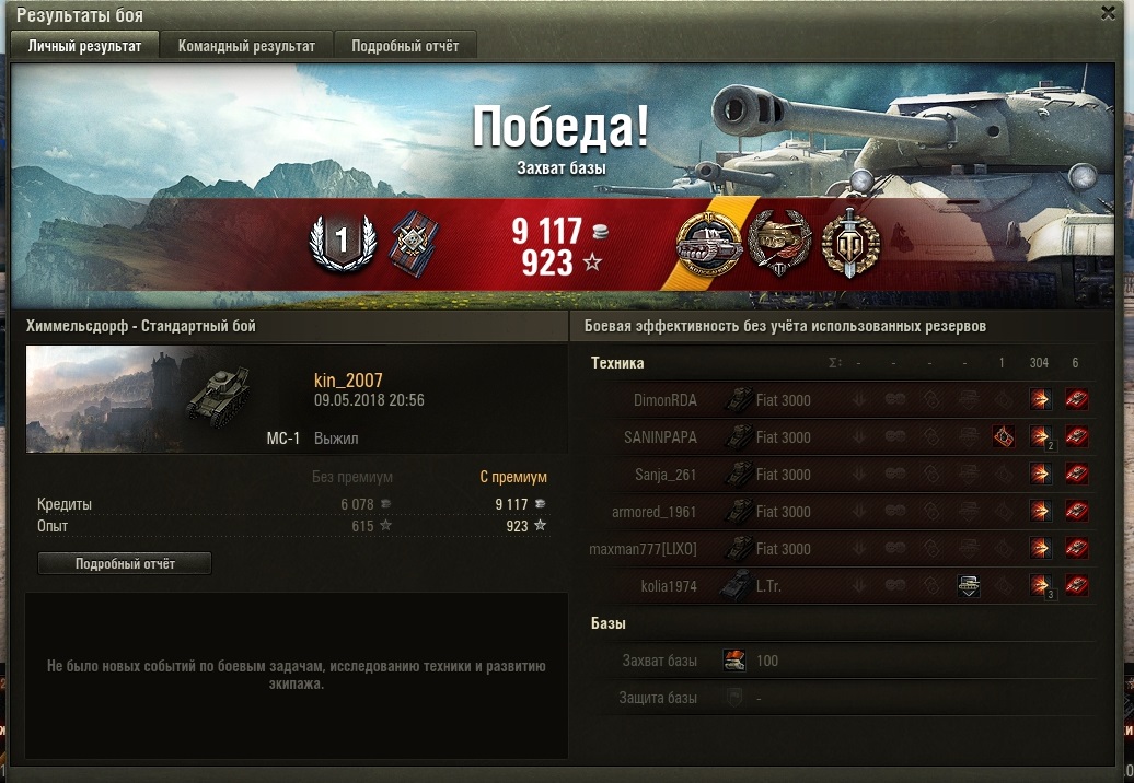 kin_2007 Опубликовано: 8 мая, 2018 Игроки 2 193 публикации 174 087 боёв Жалоба Поделиться Опубликовано: 8 мая, 2018 Если кому интересно. Поговаривают, что опыт с Т-44ЛФ по завершению вакханалии с режимом "Линия фронта" перейдёт на МС-1. Экспериментаторам может какой-то импульс придаст такое сообщение Экипаж МС купит домик в Провинции или участок в Малиновке, желательно в районе водоема, дорого, до неприличия дорого. Ссылка на комментарий Поделиться на других сайтах Другие способы поделиться...