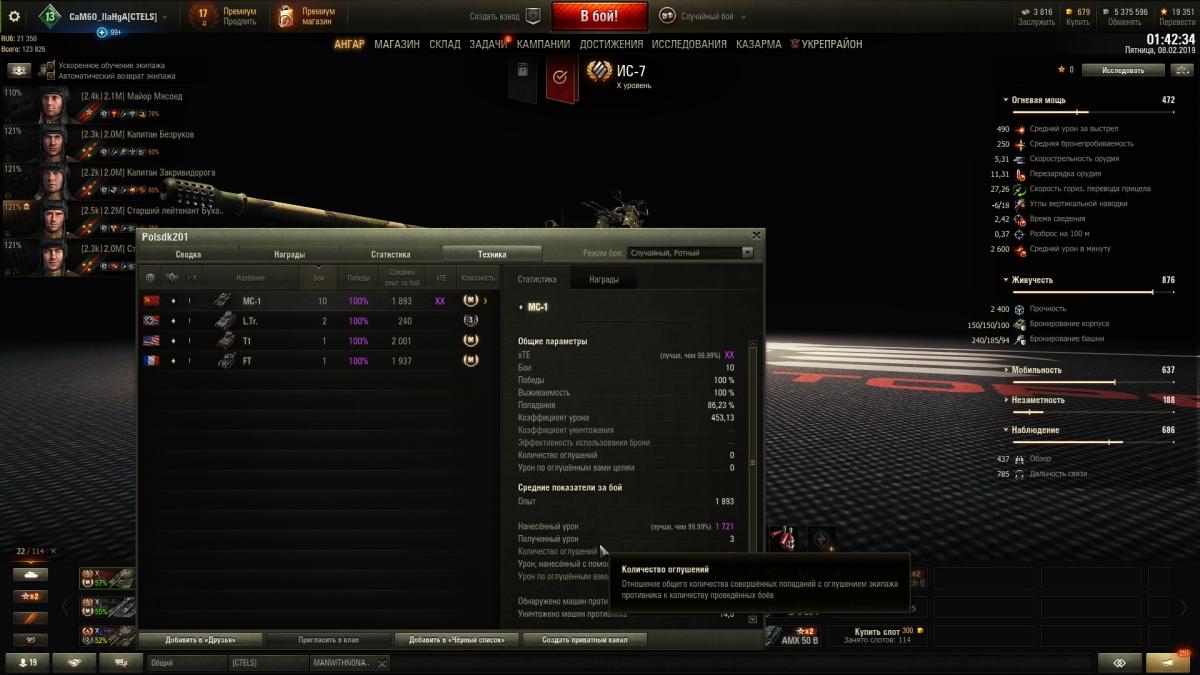 Heptyl Опубликовано: 9 февраля, 2019 Игроки 598 публикаций 10 715 боёв Жалоба Поделиться Опубликовано: 9 февраля, 2019 http://cdn-frm-eu.wargaming.net/4.5/style_images/wg/snapback.pngKPOT2338 (10 Фев 2019 - 02:10) писал:Короче я понялТак как на Вотреплейсе нет реплеев с боями этого игрока от других игроков делаем вывод, что все они боты и это бои из тех, что не давали взять мастера.Только не понятно почему они ему доступны и как он в рейтинг просочился В тех боях не давали медалей. 1 Ссылка на комментарий Поделиться на других сайтах Другие способы поделиться...