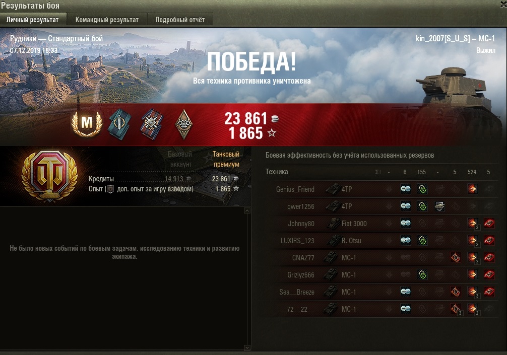 kin_2007 Опубликовано: 7 декабря, 2019 Игроки 2 193 публикации 174 087 боёв Жалоба Поделиться Опубликовано: 7 декабря, 2019 (изменено) http://cdn-frm-eu.wargaming.net/4.5/style_images/wg/snapback.pngCaM6O_IIaHgA (07 дек 2019 - 02:46) писал:Копировать чужие аватарки и уважать творчество своих фанатов, разные вещи!)Тут кто-то должен быть умнее не взирая на возраст, массу, физподготовку, денежный эквивалент, длину мужской гордости и т.д. У вас обоих, при всём уважении к обоим, из всего перечисленного наблюдаются только отдельные фрагменты. Вы пытаетесь доказать в ветке (живой на общение), что кто-то из вас обоих круче или прав взяв за основу МС. Чтобы закрыть вопрос касательно МС, обозначьте треню один на один (с нами или без нас) и там выясните чей "хвостик более кручёный". Просто сам пару раз сливал в трене парням, которые, на мой взгляд, должны были "сложиться" не отъехав от респа. Анонсируйте покатушки те-а-тет и закройте этот вопрос и, при желании, при зрителях.P.S. смог Изменено 7 декабря, 2019 пользователем kin_2007 4 Экипаж МС купит домик в Провинции или участок в Малиновке, желательно в районе водоема, дорого, до неприличия дорого. Ссылка на комментарий Поделиться на других сайтах Другие способы поделиться...