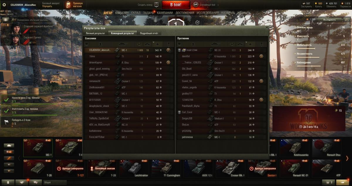 kin_2007 Опубликовано: 26 апреля, 2020 Игроки 2 193 публикации 174 087 боёв Жалоба Поделиться Опубликовано: 26 апреля, 2020 (изменено) http://cdn-frm-eu.wargaming.net/4.5/style_images/wg/snapback.pngKohlenklaw (25 апр 2020 - 19:50) писал:появилось такое же тупое задавливание жиром, как и на более высоких уровнях - кто толще, кому повезло не промахнуться и пробить, в отличие от соперника, тот скорее всего и выиграет.Это да, раньше 3 максимум 4 удачных выстрела с пробитием на соперника сейчас 6-7 и то не факт. При таких раскладах тупо не успеваешь расстрелять, если их ползет 2-3. На Мастера надо от тысячи урона сейчас по личным ощущениям (за 800-900 только 1 степень). Ну и как бы пример того, что сейчас творится в рандоме - 1 330 урона (на ст 4 уровня нанес 3 300 с хвостиком урона, что раньше было просто не реально). Изменено 26 апреля, 2020 пользователем kin_2007 Экипаж МС купит домик в Провинции или участок в Малиновке, желательно в районе водоема, дорого, до неприличия дорого. Ссылка на комментарий Поделиться на других сайтах Другие способы поделиться...