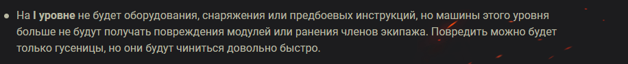 Tranator Опубликовано: 1 июня, 2020 Игроки 199 публикаций 28 106 боёв Жалоба Поделиться Опубликовано: 1 июня, 2020 (изменено) http://cdn-frm-eu.wargaming.net/4.5/style_images/wg/snapback.pngkin_2007 (30 май 2020 - 03:09) писал: Ни аптечки, ни ремки, ничего короче.А зачем? Гореть не будет, повреждения модулей и контузии экипажа так же не будет."На I уровне не будет оборудования, снаряжения или предбоевых инструкций, но машины этого уровня больше не будут получать повреждения модулей или ранения членов экипажа. Повредить можно будет только гусеницы, но они будут чиниться довольно быстро." Изменено 1 июня, 2020 пользователем Vovan28Rus Ссылка на комментарий Поделиться на других сайтах Другие способы поделиться...