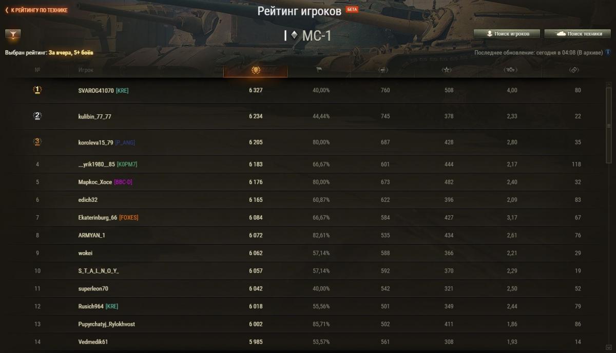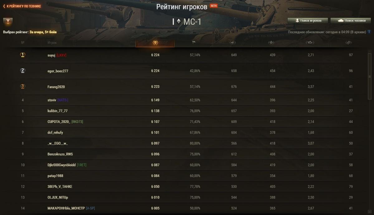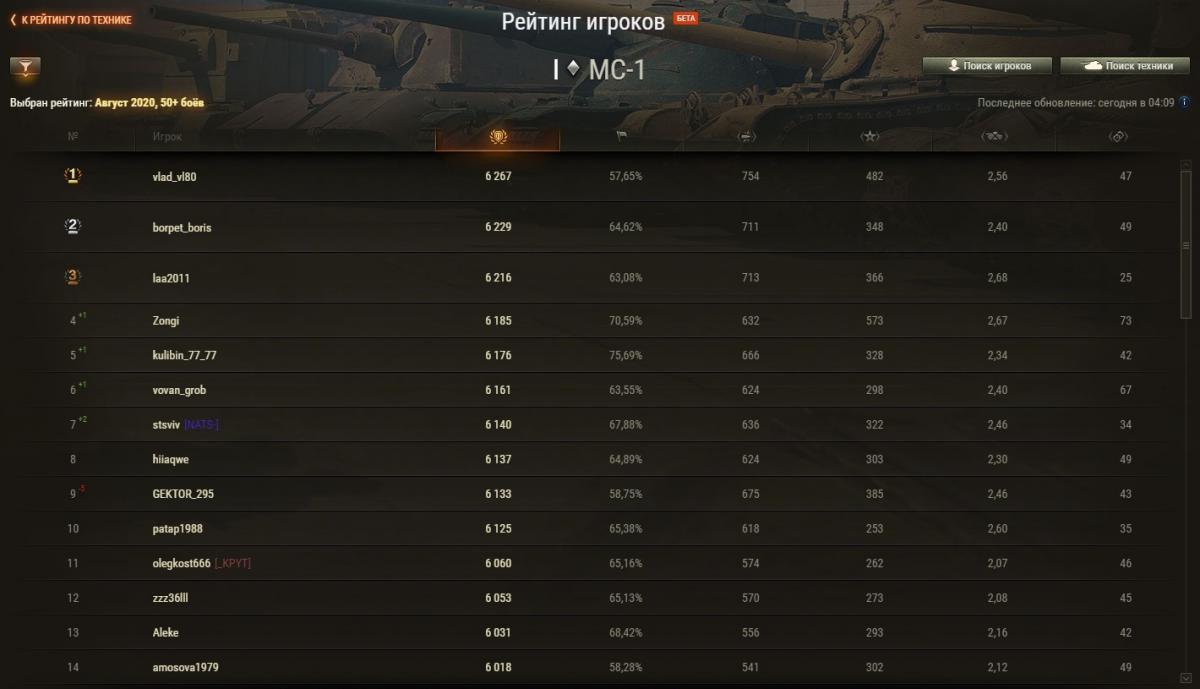 Soich Опубликовано: 15 августа, 2020 Игроки 10 386 публикаций 44 468 боёв Жалоба Поделиться Опубликовано: 15 августа, 2020 http://cdn-frm-eu.wargaming.net/4.5/style_images/wg/snapback.pngZongi (15 авг 2020 - 11:01) писал:Взвесив все "за" и "против", решил всё же дополнить формат.Также буду выкладывать рейтинги для Лолтрактора - в соответствующей теме, конечно. Рейтинг по итогам 14 августа (день, месяц, эпоха): http://cdn-frm-eu.wargaming.net/wot/ru/uploads/monthly_08_2020/post-6633688-0-15613000-1597478489_thumb.jpg http://cdn-frm-eu.wargaming.net/wot/ru/uploads/monthly_08_2020/post-6633688-0-41583000-1597486113_thumb.jpg http://cdn-frm-eu.wargaming.net/wot/ru/uploads/monthly_08_2020/post-6633688-0-45803600-1597486133_thumb.jpgеще лучше было бы, если бы вы дополнили цифрами, которые по вашему мнению являются максимальными, при честной игре. Я вот считаю, что видимые в таблице 676 вполне достижимы, а вы что думаете? Как после перекраивания казармы и личных дел изменить специальность танкиста. Ссылка на комментарий Поделиться на других сайтах Другие способы поделиться...