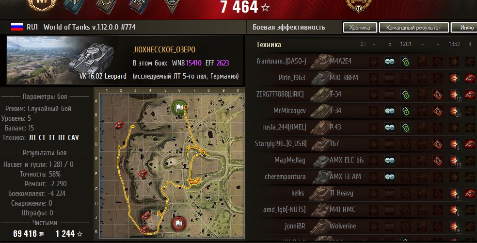 Но этот бой был только предупреждение, потом ЛТ в команду начали давать 43%х по акку.