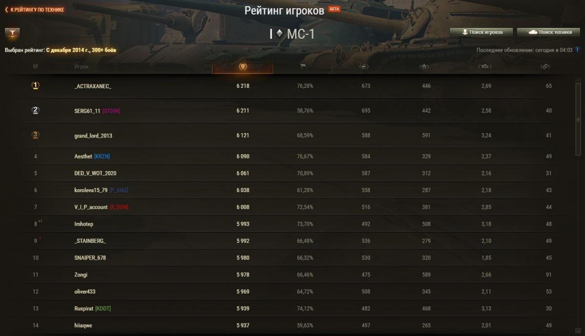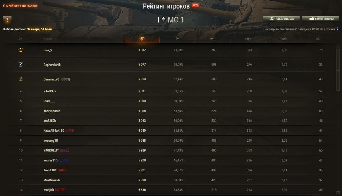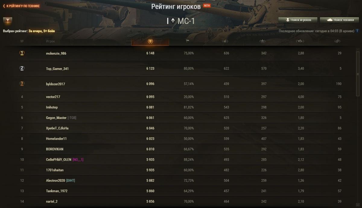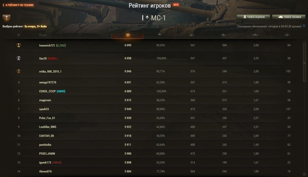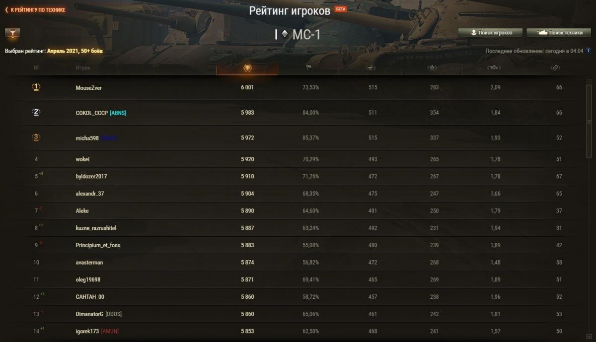 Zongi Опубликовано: 29 апреля, 2021 Игроки 2 234 публикации 19 375 боёв Жалоба Поделиться Опубликовано: 29 апреля, 2021 Рейтинги по итогам 28 апреля: http://cdn-frm-eu.wargaming.net/wot/ru/uploads/monthly_04_2021/post-6633688-0-43274000-1619696575_thumb.jpg http://cdn-frm-eu.wargaming.net/wot/ru/uploads/monthly_04_2021/post-6633688-0-14774500-1619696584_thumb.jpg http://cdn-frm-eu.wargaming.net/wot/ru/uploads/monthly_04_2021/post-6633688-0-14419400-1619696591_thumb.jpg 3 С утра орава модераторов модерировала-модерировала, да и не вымодерировала, не вымодерировала ) Ссылка на комментарий Поделиться на других сайтах Другие способы поделиться...