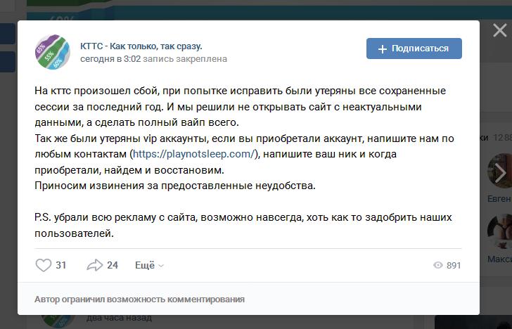 JIOXHECCKOE_O3EPO Опубликовано: 31 мая, 2021 Игроки 2 859 публикаций 36 015 боёв Жалоба Поделиться Опубликовано: 31 мая, 2021 (изменено) Ну вот... Поборол сегодня лень и решил зайти на kttc.Не судьба.http://cdn-frm-eu.wargaming.net/wot/ru/uploads/monthly_05_2021/post-11294084-0-31575700-1622442084_thumb.jpgДля тех кто решит там поковыряться.Но за этот сайт не так обидно. Действительно жаль было что wotreplays старые реплеи грохнул. Изменено 31 мая, 2021 пользователем JIOXHECCKOE_O3EPO Мой давний скромный Колобанов на ещё не понерфленном танке https://www.youtube.com/watch?v=pa9mrBpxQ2M Ссылка на комментарий Поделиться на других сайтах Другие способы поделиться...