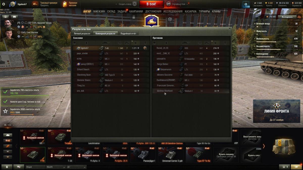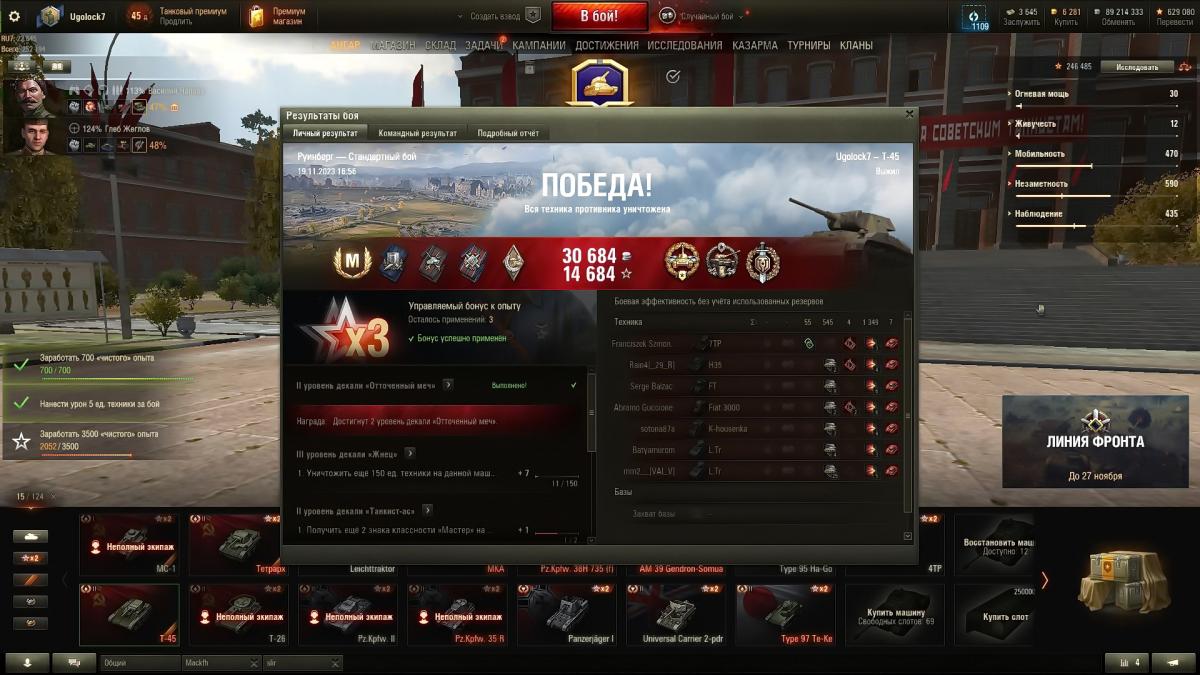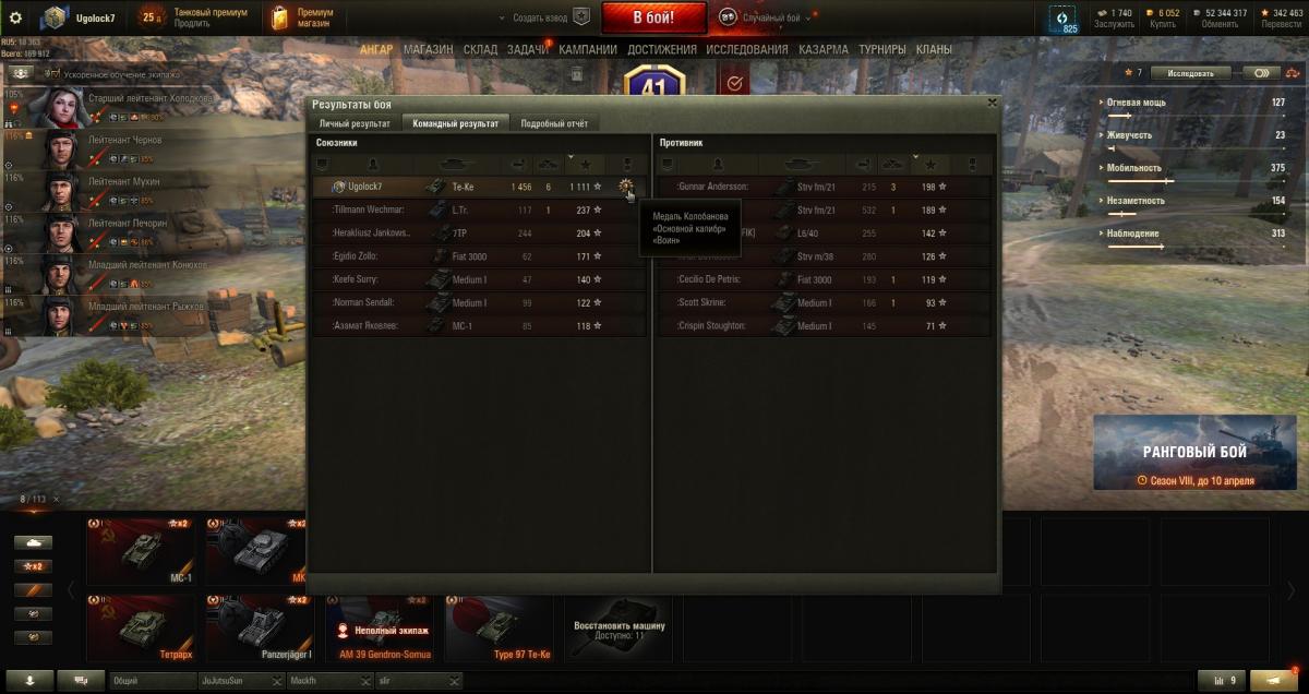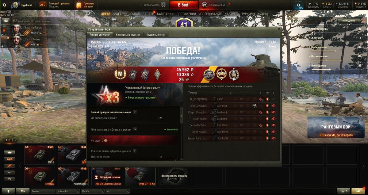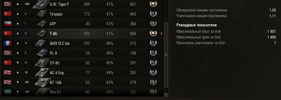 Ugolock7 Опубликовано: 19 ноября, 2023 Игроки 5 211 публикация 38 841 бой Жалоба Поделиться Опубликовано: 19 ноября, 2023 19 ноя 2023 - 20:10 пользователь A_P_Maddoc сказал:Только что выяснил - максимальный опыт за бой пишется с премом. Средний, возможно, без него. Да, признаю, я был неправ. Прошу прощения у всех, кого вводил в заблуждение. Мне почему-то казалось, что картошка должна заносить в таблицу достижений чистый опыт. Почему они так не делают - загадка.Вот мой сегодняшний рекордный бой на Т-45. На 1907 опыта, которые были тут же внесены в таблицу достижений. С учетом прем-аккаунта. Без према было бы - 1271. 1 Т-54, Т-55, Т-62, Т-72. Сумею и на Т-64. В реале. Ссылка на комментарий Поделиться на других сайтах Другие способы поделиться...
