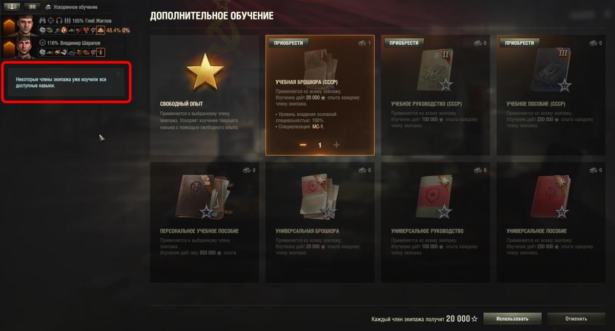 Ugolock7 Опубликовано: 27 января, 2024 Игроки 5 211 публикация 38 841 бой Жалоба Поделиться Опубликовано: 27 января, 2024 24 янв 2024 - 20:15 пользователь A_P_Maddoc сказал: Ура! С приходом нового патча Мосин мехвод резко изучил все доступные навыки. Обратил внимание, что с выходом обновления, учебники стало возможно применять не обязательно на "родном" танке.У меня экипаж с МС-1 сидит в Т-45. Букварь срабатывает. Экипаж на Тетрархе обучен на Т-26, поэтому раньше приходилось держать Т-26 в ангаре, чтобы применять брошюры и пособия. Сейчас уже не требуется.Даже если смешанный экипаж на танке, то тоже можно. 2 Т-54, Т-55, Т-62, Т-72. Сумею и на Т-64. В реале. Ссылка на комментарий Поделиться на других сайтах Другие способы поделиться...