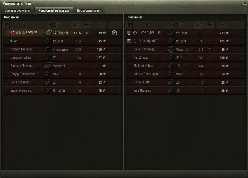 Ugolock7 Опубликовано: 30 апреля, 2024 Игроки 5 211 публикация 38 841 бой Жалоба Поделиться Опубликовано: 30 апреля, 2024 28 апр 2024 - 18:27 пользователь The_X_Factor сказал: А меня раздражает симуляция победы/поражения (если все игорьки ливнули). Я бывало ливал из боев где из всей тимы слился только я, ну или я и еще один а во вражеской убит и игрок, и еще несколько ботов, то есть у нас машин осталось больше. И мне засчитывают поражение. Я уже изо всех сил стараюсь, в таких случаях, выживать любым путём.Однажды был в шоке - у них остался один бот (который убил меня блайндом в куст... бот, блин! блайндом! в куст), у нас осталось 4 бота, количество ХП у нас больше, я лично убил игрока-оппонента из их команды. Но мне засчитывают поражение.Как у них там считают шансы на победу - непонятноПоэтому - только выживать, особенно когда мало прочности осталось 3 Т-54, Т-55, Т-62, Т-72. Сумею и на Т-64. В реале. Ссылка на комментарий Поделиться на других сайтах Другие способы поделиться...