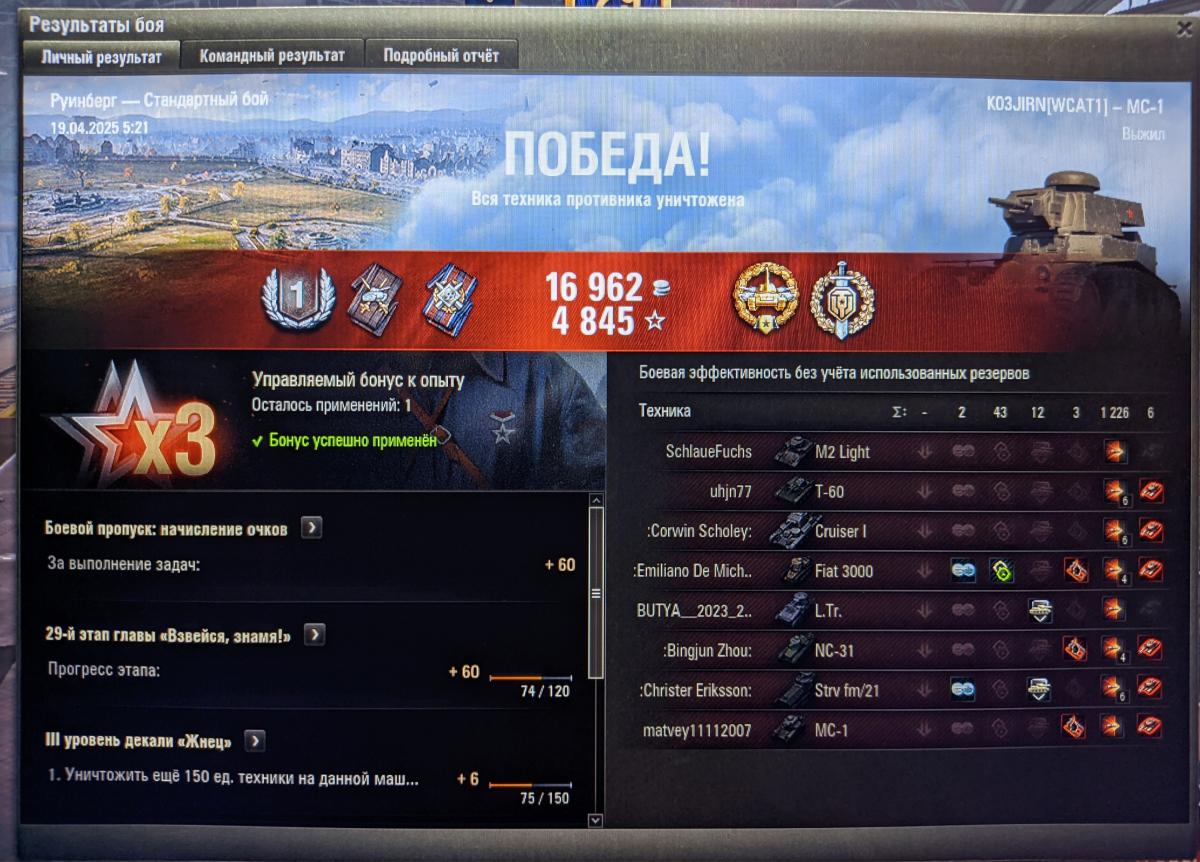 A_P_Maddoc Опубликовано: 26 апреля, 2025 Игроки 6 329 публикаций 86 477 боёв Жалоба Поделиться Опубликовано: 26 апреля, 2025 (изменено) 26 апр 2025 - 22:38 пользователь K03JIRN сказал: Ну как бэ вот:https://forum-mt-prod.lesta.ru/monthly_04_2025/post-4996972-0-64404800-1745699669_thumb.jpgСкринов не делал, бой не сохранял. Сколько чистого опыта дали не помню. Но весь настрел в городе, с близкой дистанции, т.е. по собственному свету. Т.е. должно быть не мало.4845 с х3 даже если есть прем, то это около 1К чистого. Странно, что только первая стадия. UPD: Я за ~1К в лучшие годы Мастера имел. При этом те, кого сейчас видел - они по 500 даже не могут. Изменено 26 апреля, 2025 пользователем A_P_Maddoc 1 +++[>+++>+++>+++>+++>+++<-]>+++>>+++.---.<+++.+++.<.>----.<.>++.<++.---.<<<.>>>---.+++.>-.+.<<<+. 11 Сен 2018 - 23:51 пользователь CaM6O_IIaHgA сказал: Ответь для начала на вопрос, ты видишь разницу между понятиями "механика нанесения урона" и "механика снятия хп"? Ссылка на комментарий Поделиться на других сайтах Другие способы поделиться...