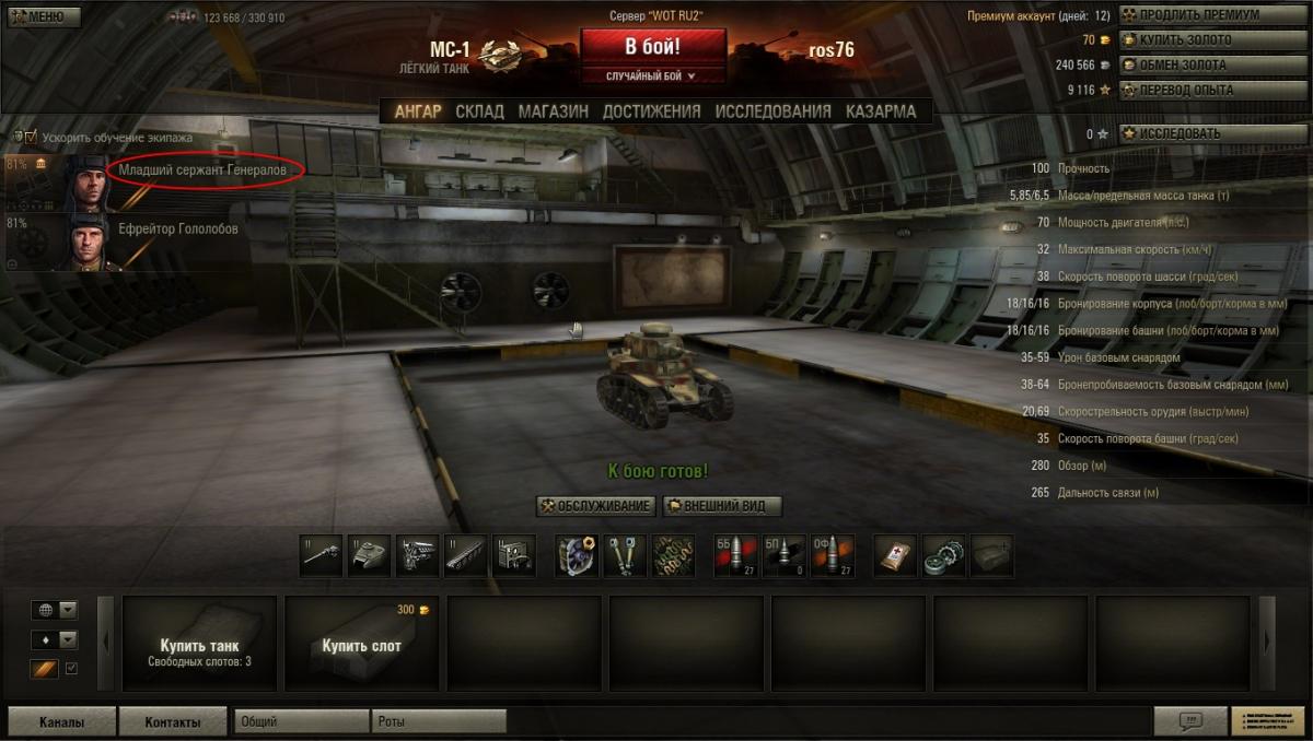 mikhanych Опубликовано: 1 августа, 2012 Игроки 2 785 публикаций 39 824 боя Поделиться Опубликовано: 1 августа, 2012 31 Июл 2012 - 19:14 пользователь IDFA сказал:Вот я своему экипажу хочу вкачать: "Боевое братство", "6 чувство", "Маскировка", "Радиоперехват", "Орлиный глаз", "Плавный поворот башни", "Бесконтактная боеукладка", "Отчаянный", "Снайпер", "Эксперт", "Ремонт" - командиру;мехводу - "Боевое братство", "Чистота и порядок", "Ремонт", "Маскировка", "Король бездорожья", "Виртуоз", "Плавный ход", "Пожаротушение". Я не утверждаю что это лучший выбор, но с таким экипажем буду играть очень уверенно и эффективно.ЗЫ: В следующей жизни посмотрите сколько боев на девайсе у товарища, там вполне может и быть 31 Июл 2012 - 19:55 пользователь inkassator1969 сказал:Камрады! Не подскажете ли, за какое количество боев, примерно, можно прокачать второй и третий навык/умение?Для себя первым поставил Снайпера командиру и Маскировку мехводу.В одном бою из трех - ваншот 100% танка первого уровня... Меня устраивает.А вот что прокачивать вторым, а что третьим, пока не решил...если качать без ускореной прокачки - то:первый перк - 210 к опытавторой - 420 к,третий - 840 к,четвертый - 1 680 кну и так далее, делите на свой средний опыт и получите в количестве боев. при ускоренной прокачке - именно на этом танке в полтора раза быстрее. 3 Некоторые школьники с плохой успеваемостью утверждают, что им плевать на оценки и они учатся исключительно ради удовольствия. Тот факт, что медуза выжила 650 миллионов лет без мозгов, дает надежду многим людям. Ссылка на комментарий Поделиться на других сайтах Другие способы поделиться...