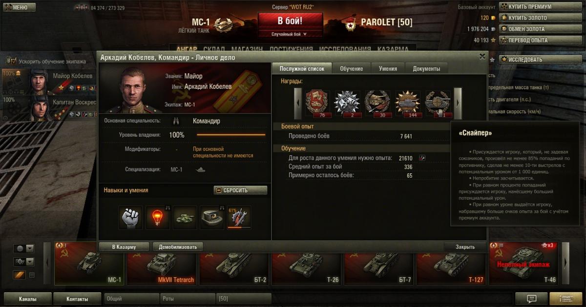Kohlenklaw Опубликовано: 29 сентября, 2012 Игроки 3 484 публикации 39 763 боя Поделиться Опубликовано: 29 сентября, 2012 29 Сен 2012 - 10:48 пользователь Wilde_Goos сказал:как это так?Взял стену на КВ-2, пересадил экипаж на МС - вуаля, СС у экипажа МС-1. Не показатель. Достижения танка в стате танка. Предложение по запуску альтернативной версии игры для любителей классического геймплея: тыц Ссылка на комментарий Поделиться на других сайтах Другие способы поделиться...