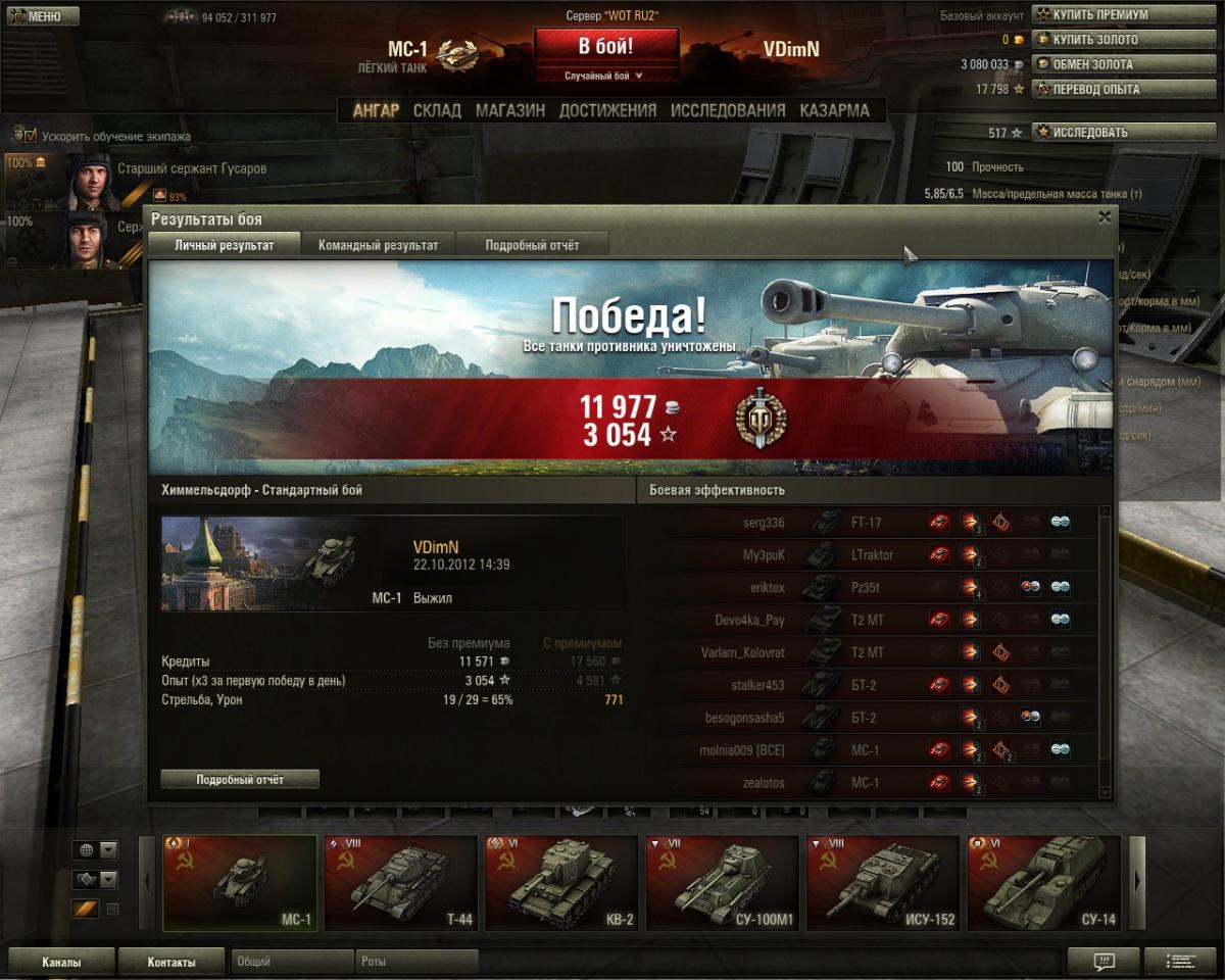 VDimN Опубликовано: 22 октября, 2012 Игроки 551 публикация 32 023 боя Поделиться Опубликовано: 22 октября, 2012 (изменено) И я немножко похвастаюсь :) Самый мой большой опыт на нелюбимом хумельсдохе со 2 уровнем :) Изменено 22 октября, 2012 пользователем VDimN Ссылка на комментарий Поделиться на других сайтах Другие способы поделиться...