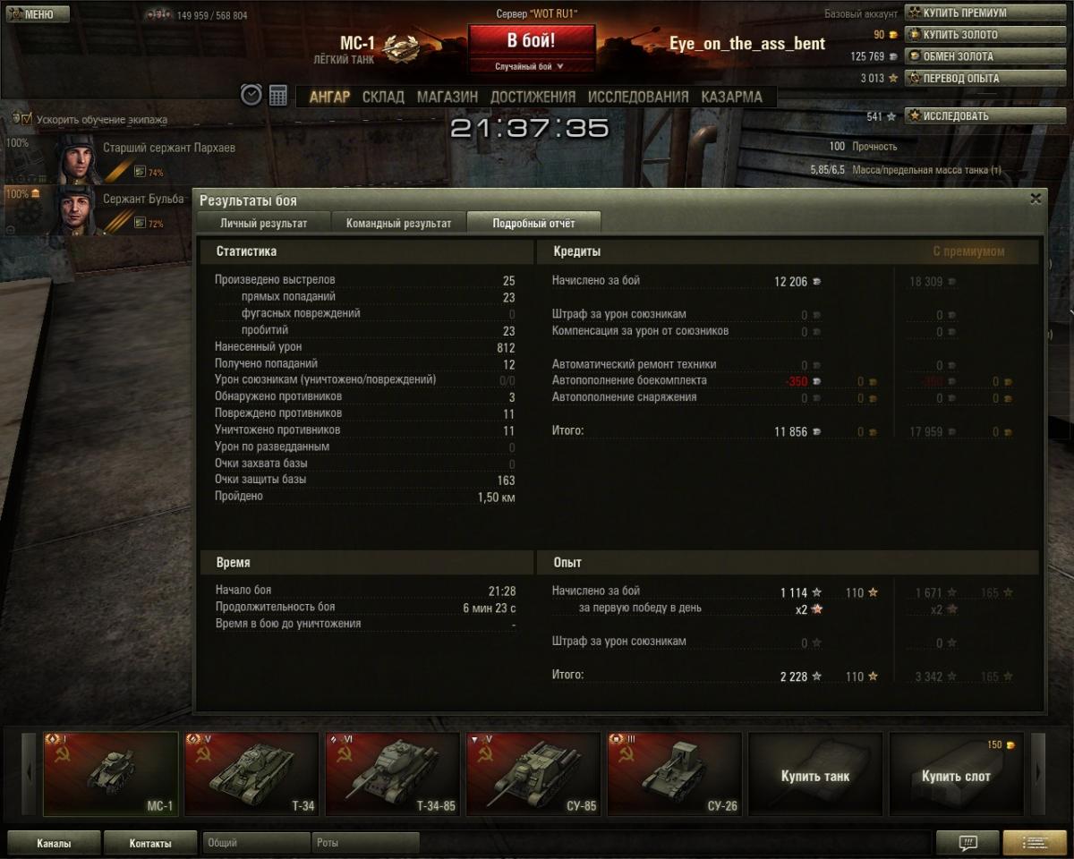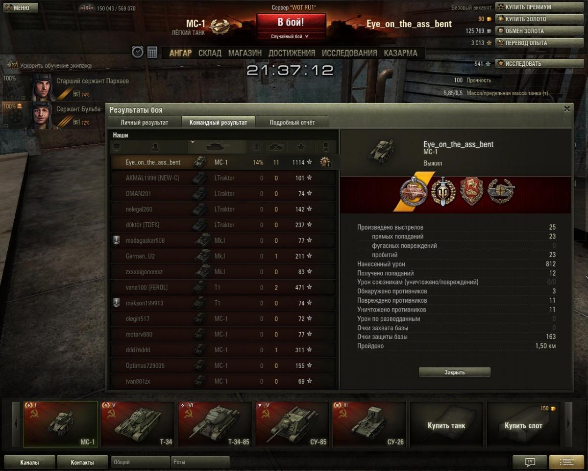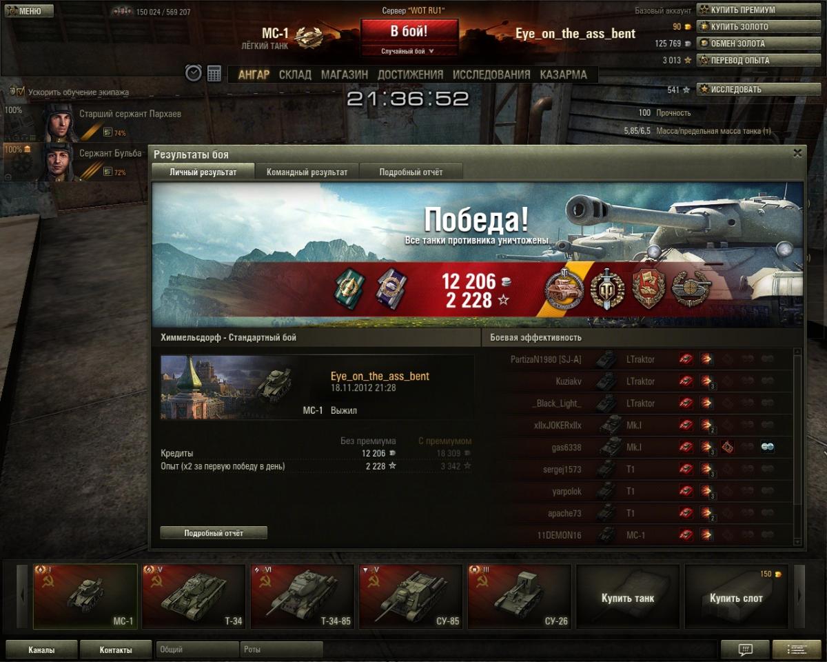 kin_2007 Опубликовано: 18 ноября, 2012 Игроки 2 193 публикации 174 260 боёв Поделиться Опубликовано: 18 ноября, 2012 Попробовал взять Орлика и в первом же бою получилось Как показала практика, МоСь на высоких уровнях не такой уж и брелок, а равноправный член команды http://cdn-frm-eu.wargaming.net/wot/ru/uploads/monthly_11_2012/post-6412897-0-03147200-1353247827_thumb.jpg http://cdn-frm-eu.wargaming.net/wot/ru/uploads/monthly_11_2012/post-6412897-0-10343200-1353247836_thumb.jpg 2 Экипаж МС купит домик в Провинции или участок в Малиновке, желательно в районе водоема, дорого, до неприличия дорого. Ссылка на комментарий Поделиться на других сайтах Другие способы поделиться...