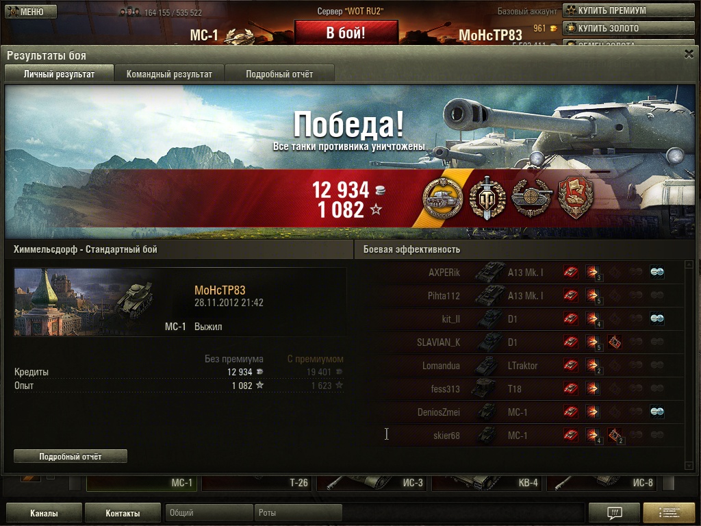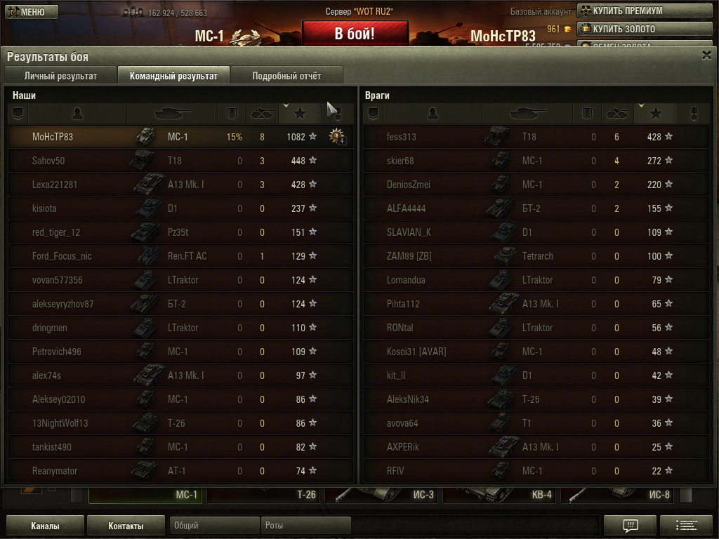 lubber Опубликовано: 19 декабря, 2012 Игроки 2 068 публикаций 8 158 боёв Поделиться Опубликовано: 19 декабря, 2012 19 Дек 2012 - 21:31 пользователь HKSJHD сказал:Свежий скрин, кстате... Аж 4 (+ 2 условно) новичка на обе команды - клево, чо... Яркое отображение успешного эээ... маркетинга.Кстати, о чём я и говорил. Обратим внимание на уровень топов. И чем выше, тем с этим, хм, не лучше :) Marder II - лучшая арта 3 лвл! Ссылка на комментарий Поделиться на других сайтах Другие способы поделиться...