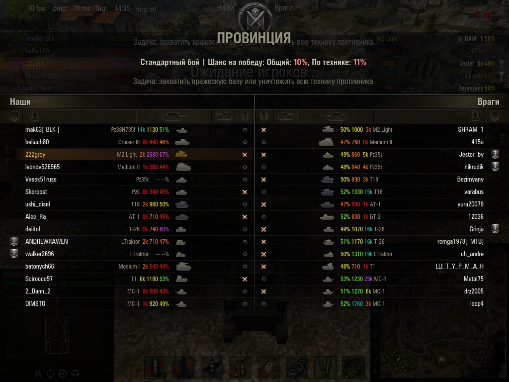 Tuv_Tuskish Опубликовано: 19 декабря, 2012 Игроки 256 публикаций 15 858 боёв Автор Поделиться Опубликовано: 19 декабря, 2012 К сожалению, не могу поправить первое сообщение, дабы внести туда инструкцию Коха по брелкованию. Пишет, что в сообщение есть ссылка на запрещенный ресурс. Канал любителей "песочных" танчиков - Sandy Tanks Патч 0.6.2.7 урезал число карт, доступных танкам I и II уровня в несколько раз. Я - против! Всем танкам - все карты. Патч 0.9.10 похоронил бои на танках I и II уровня. Вот нахрена?! Ссылка на комментарий Поделиться на других сайтах Другие способы поделиться...