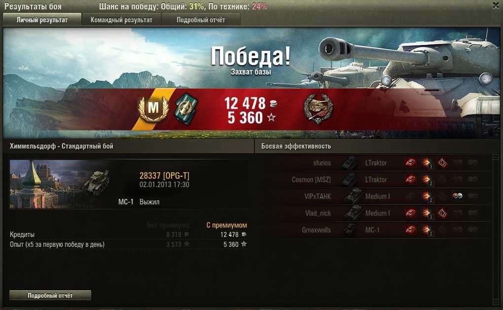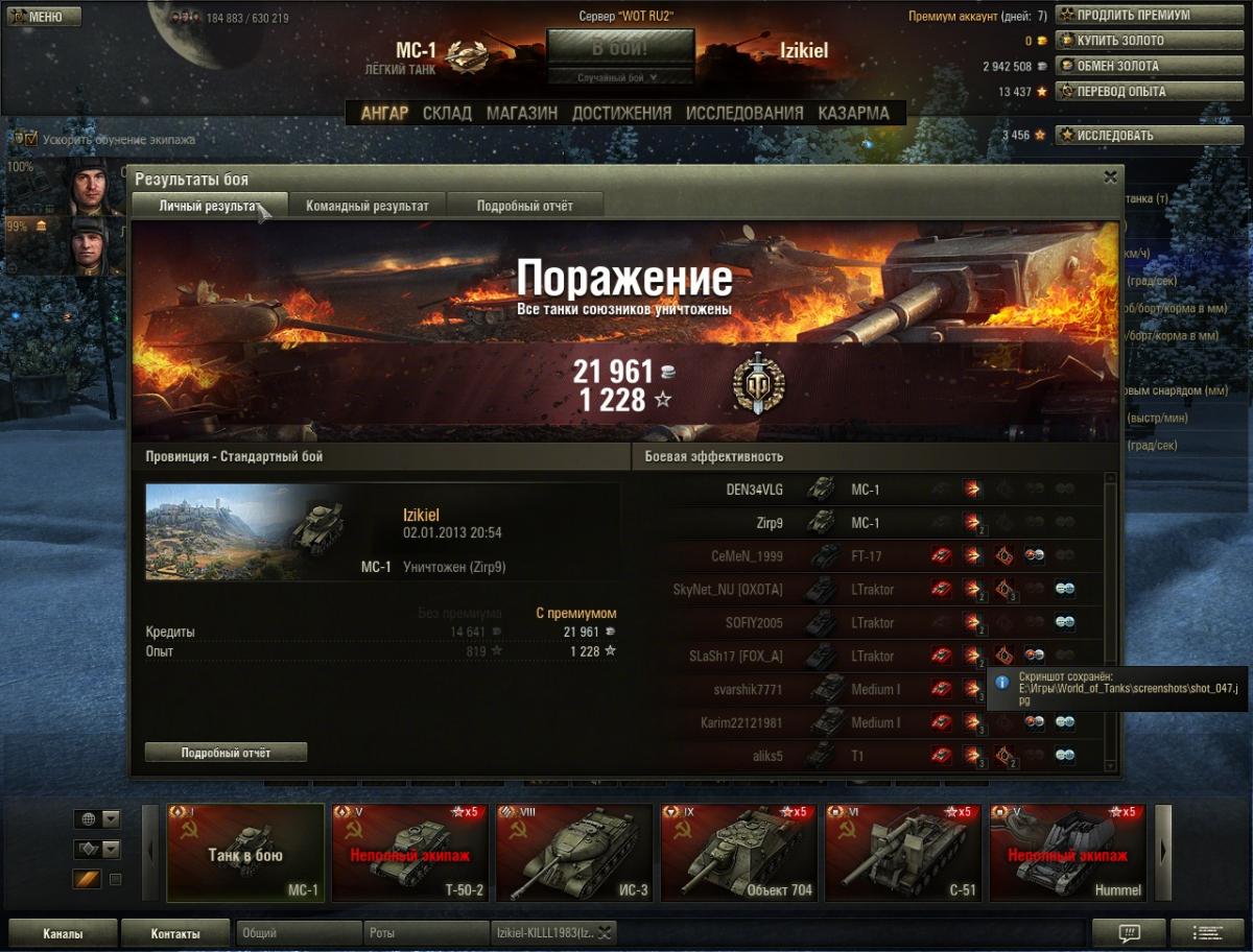 Zabriskie_Point Опубликовано: 2 января, 2013 Игроки 144 публикации 11 051 бой Поделиться Опубликовано: 2 января, 2013 было у меня 12 боев на мс-ке, продал нафиг, решив качать немцев. а тут вдруг решил вспомнить "молодость", купил и........ и первый же бой: http://cdn-frm-eu.wargaming.net/wot/ru/uploads/monthly_01_2013/post-8167637-0-57509100-1357140671_thumb.jpg Ссылка на комментарий