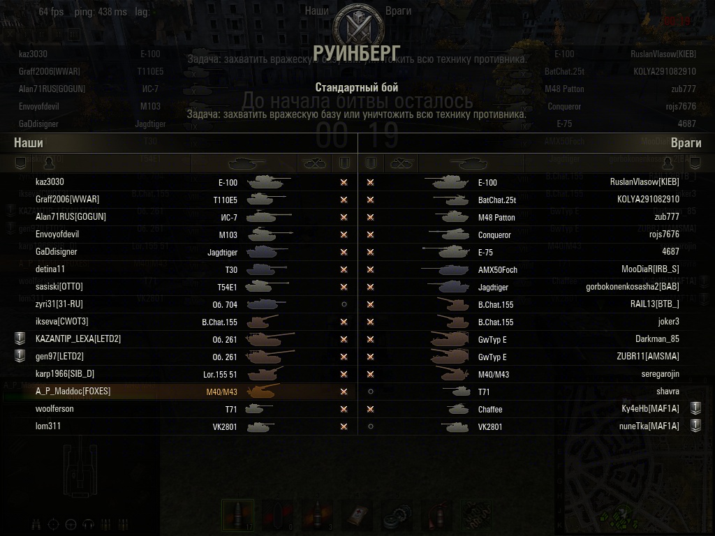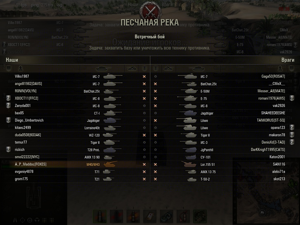 FantomFire Опубликовано: 6 февраля, 2013 Игроки 437 публикаций 14 306 боёв Поделиться Опубликовано: 6 февраля, 2013 06 Фев 2013 - 13:22 пользователь sky_baton сказал:Ещё подробнее разжевать надо? Хорошо. Для красоты берём бой 9-10лвл. 14 танков 10лвл + 1 танк 1лвл = 141 очко. В противоположной команде тоже должно быть 141 очко, а это значит что средний уровень танков = 9,4. Значит будет 6 танков 10лвл и 9 танков 9лвл.Смысл правильный только расчеты не совсем верны. 14 ТТ10 + МС-1 = 2032 очка что может забалансить 13 ТТ10 + 1 ТТ9 + 1 ТТ8 или 12 ТТ10 + 3 ТТ9Это только для примера конечно. В игре я ни разу не видел столько десяток так что всегда найдется чем забалансить брелок. Так было в старом балансировщике. Сейчас балансный вес изменили но принцип остался тот же У меня 47%!!! Почему мне так не везет с командой? Ссылка на комментарий Поделиться на других сайтах Другие способы поделиться...