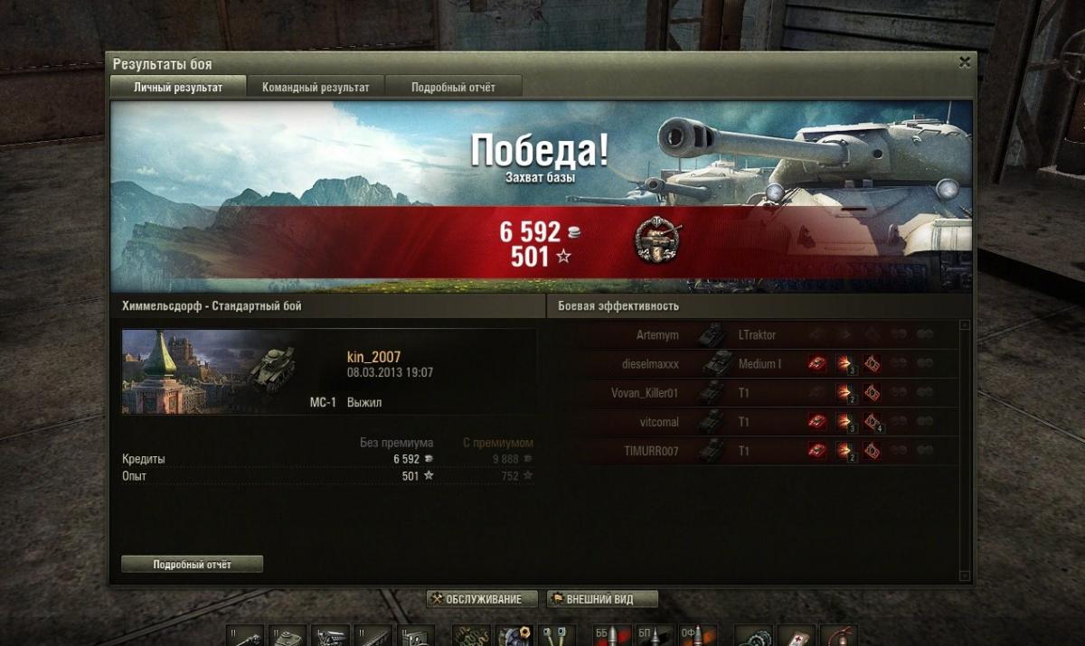 D__V__K Опубликовано: 8 марта, 2013 Игроки 761 публикация 14 383 боя Поделиться Опубликовано: 8 марта, 2013 08 Мар 2013 - 20:02 пользователь grig54 сказал:На МС-1 ремонт бесплатен всегда.Дело в том что танки первого уровня предоставляются бесплатно.Платишь только за снаряды.Мне только непонятно.Стоимость моего МС-1 551 625.Это как? Причем потихоньку растет.Так у тебя, небось, приводы да труба стоят. Стоимость показывают с учетом, установленного оборудования. Ссылка на комментарий