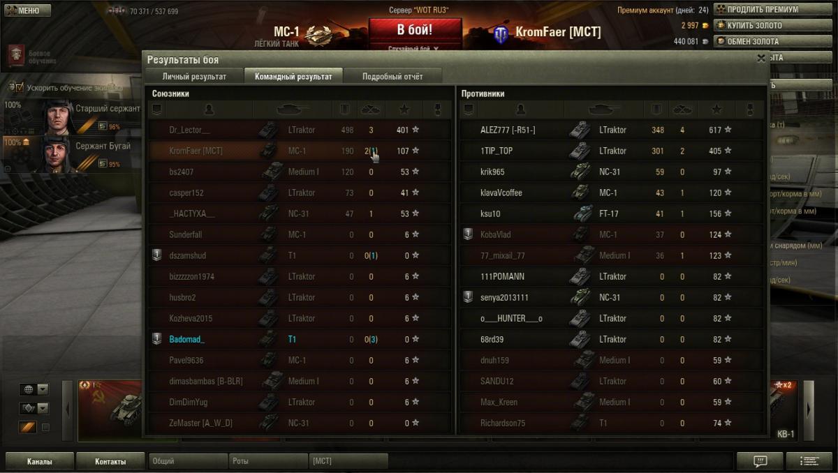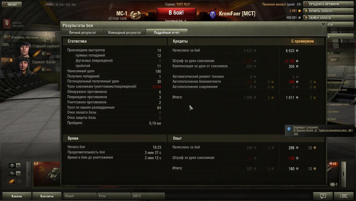 grig54 Опубликовано: 18 марта, 2013 Игроки 6 228 публикаций 49 354 боя Поделиться Опубликовано: 18 марта, 2013 (изменено) 18 Мар 2013 - 16:36 пользователь KromFaer сказал:Блин сейчас бой бред, наш взвод начал с респа расстреливать в спину своих, один поголубел после 3-го, второй слил одного и ничего, я их обоих завалил так мне и штраф впаяли, система авто штрафа совсем что ли не работает, как их наказать парни не подскажитеЗа двое суток убил своих двоих.Одного случайно, второго (по мне стрелял).Сразу на второго заявил жалобу.Если бы не пожаловался то поголубел бы. Система работает автоматом, но если есть жалоба то внимательнее рассматривают. Но шраф заплатишь. Изменено 18 марта, 2013 пользователем grig54 −−−• − −−− −• •− −−−− •− •••− •• −−•• −• −••− ••−−•• •• −−• •−• •− Фортуна любит смелых, а ВБР красных. ВЕРНИТЕ ПРОВИНЦИЮ-положите туда откуда взяли!!! Враг хитер и коварен. Огонь Провел на курортах Банландии 190 дней Ссылка на комментарий Поделиться на других сайтах Другие способы поделиться...