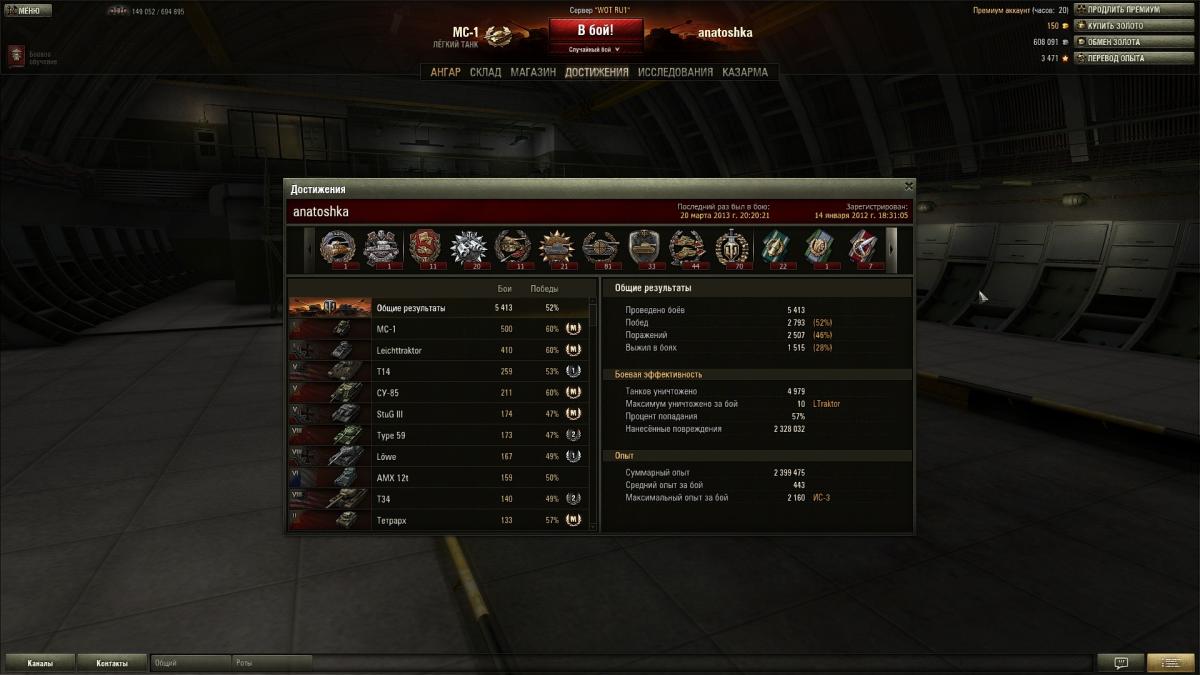 figvam_vsem131 Опубликовано: 20 марта, 2013 Игроки 983 публикации 36 678 боёв Поделиться Опубликовано: 20 марта, 2013 Заглянул я в личные дела своего экипажа и ничего не понял. У командира написано "Проведено боёв 1900" (как и в разделе достижений на МС), а у мехвода почему-то "проведено боёв 1888". При том, что я ни разу никого из них не пересаживал, не высаживал и т.п. Куда у мехвода восемнадцать боёв делись, кто подскажет? При этом пишут, что до прокачки следующего процента перка осталося 1 бой у обоих одинаково. Ничего не понимаю. Тем более, что, колгда выходил из игры в последний раз, одному оставалось 12 боёв, а второму 13 (на память не жалуюсь). Что, ещё и прокачка перка внезапно подскочила? Не могло такого случиться, что за меня кто-то играл, взломав аккаунт? Хотя какой смысл? Чувствую себя ботоводом ВЕРНИТЕ "ПРОВИНЦИЮ" на 1 уровень и дайте первому уровню "Прохоровку!!!! Ссылка на комментарий Поделиться на других сайтах Другие способы поделиться...