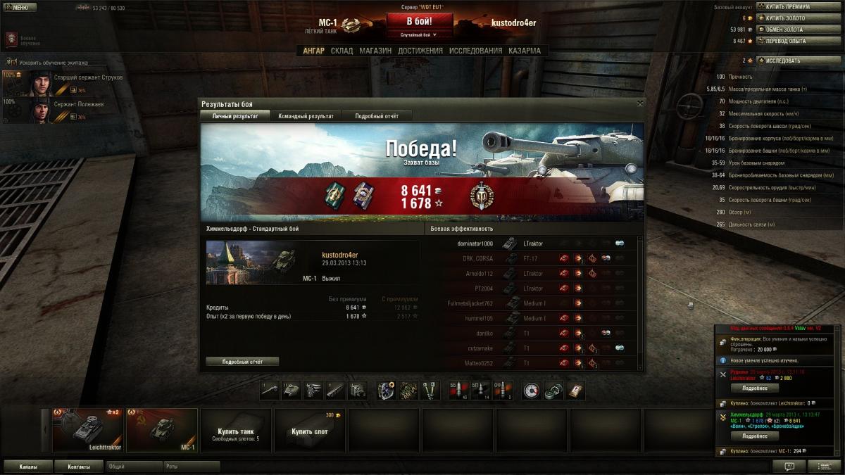 Вот прокатнулся на Евро. На двоих с Трактором забрали 12 фрагов, 8+4.