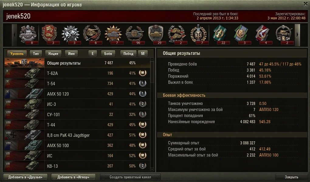 GlebskyT Опубликовано: 2 апреля, 2013 Игроки 675 публикаций 20 895 боёв Поделиться Опубликовано: 2 апреля, 2013 02 Апр 2013 - 11:40 пользователь PAROLET сказал:По моим впечатлениям наиболее адекватные люди играют на 4-5-6 ЛВЛ. Потом, чем выше, тем больше оленизма в людях. С 5ЛВЛ интереснее всего бои проходят. Там наш свет используют хорошо. Да и подамажить врагов можно эффективно с фрагами и "Орликами".только на пятом-шестом уровне постоянно вижу обе команды состояших из 27-29 красных игроков.ни на 1-3, ни на 8-10 такого не бывает 1 Ссылка на комментарий Поделиться на других сайтах Другие способы поделиться...