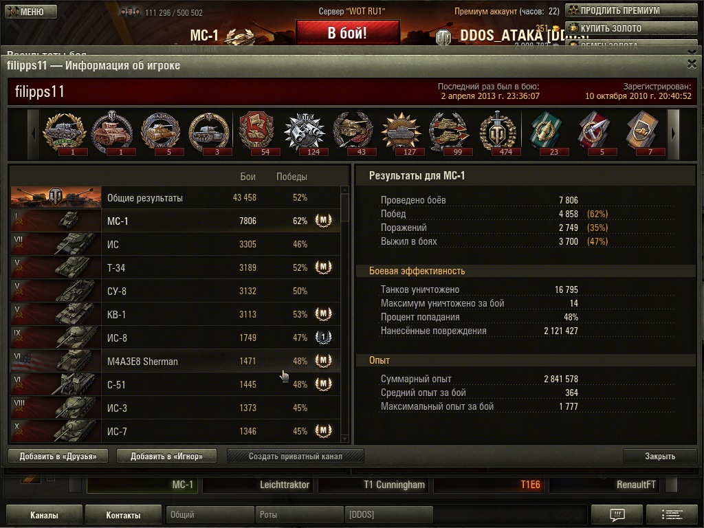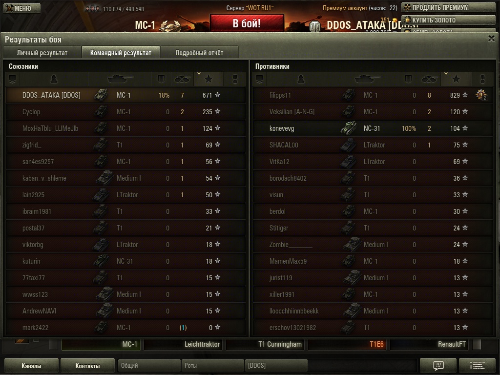 Wilde_Goos Опубликовано: 3 апреля, 2013 Игроки 2 042 публикации 6 045 боёв Поделиться Опубликовано: 3 апреля, 2013 Выпал сейчас бой в Провинции, у противнка 5 игроков с кол-вом боев 20000, у нас только у меня 6 и у Т1 - 4тыс., правда наши "белые" оказались адекватными(первый случай на памяти" , вообщем выиграли, когда последнего их опытного Трактора снесли и я неудержался подколол...отмазка, только купил)))) На вопрос за сколько, был игнор, но поведение конечно удивило, иметь такой опыт, причем на 1 лвлах там тоже за 1000 боёв и такое поведение.....ну и ладно. Куплю билет в СССР, дорого!!! Ссылка на комментарий Поделиться на других сайтах Другие способы поделиться...