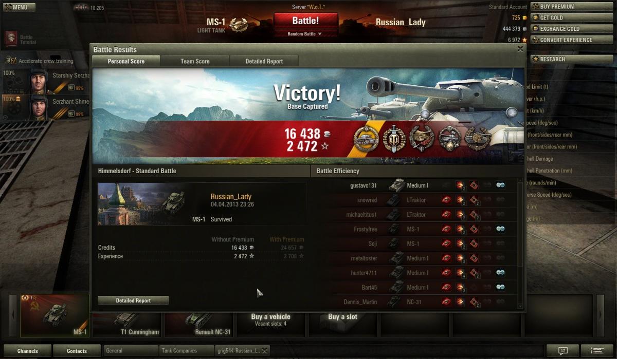 m52100 Опубликовано: 4 апреля, 2013 Игроки 246 публикаций 52 261 бой Поделиться Опубликовано: 4 апреля, 2013 Как говорится, родные стены помогают.Вот и мне в Химмельсдорфе помогли "химкинские" стены сделать невероятное! 288-й бой, 1% остался до "включения Лампы".И тут на тебе:- и ЧЕСТНЫЙ бой (это самое важное, все эти 5:15, 7:15 - не в счёт!),- и редкая медаль Колобанова, и редчайший для песочницы "Снайпер" (из 30-ти выстрелов 29 попаданий, 1089 урона!),- и куча прочих медалек и достижений!- и еще - мой новый рекорд опыта!- и, наконец, самое-пресамое приятное - восхищение и своих, и врагов боем советского героического маленького эМэСика, совершившего невозможное!!! :girl: Кому интересно http://wotreplays.ru...orf-m52100-ms-1Сама завтра еще с семьей погляжу... 9 Бывают разного рода удары: удар по позвоночнику, по нервам, по совести, но самый сильный и болезненный — удар по чувству собственного достоинства! Ссылка на комментарий Поделиться на других сайтах Другие способы поделиться...
