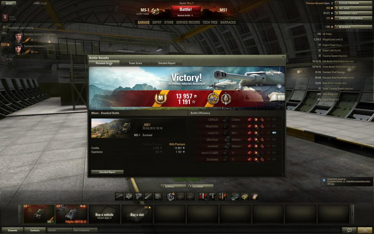 Zongi Опубликовано: 22 апреля, 2013 Игроки 2 239 публикаций 19 447 боёв Поделиться Опубликовано: 22 апреля, 2013 Кстати, кто-то писал, что "Мастера" на МС-1 легко получить. Может, оно и так. Но по данным XVM максимальный показатель среднего дамага на танке сейчас составляет 376 единиц, среднего числа фрагов - 3,25, обнаружения - 3,26. Лично мне эта планка кажется почти недостижимой. С утра орава модераторов модерировала-модерировала, да и не вымодерировала, не вымодерировала ) Ссылка на комментарий Поделиться на других сайтах Другие способы поделиться...