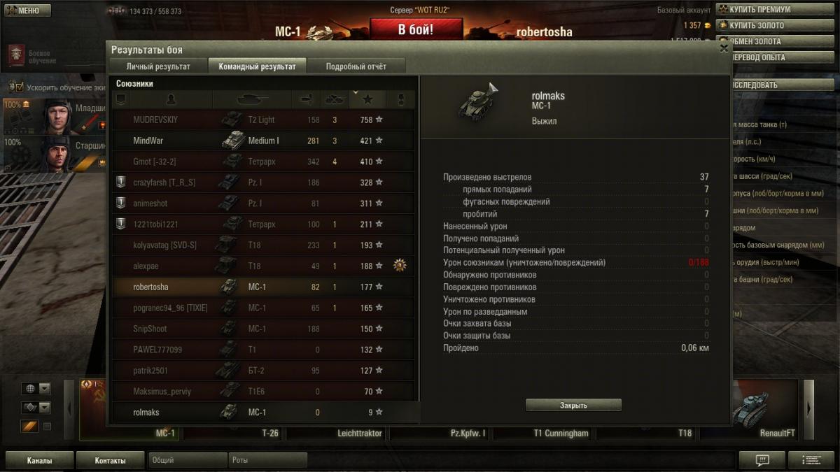 _W_O_R_M_I_X_ Опубликовано: 26 апреля, 2013 Игроки 1 528 публикаций 3 618 боёв Поделиться Опубликовано: 26 апреля, 2013 21 Апр 2013 - 09:57 пользователь grig54 сказал:Пару раз играл на новом акке.Почему-то первые30-50 бов проходят на УРА.И мастера и медали и победы.Потом сползаешь на свой обычный уровень.уже 80% :о) и зачем мне гоча, когда трактор доставляет:) Ссылка на комментарий Поделиться на других сайтах Другие способы поделиться...