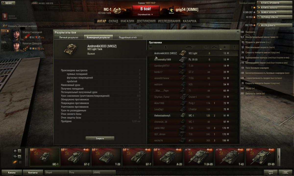 RenamedUser_6457716 Опубликовано: 5 мая, 2013 Игроки 49 публикаций 547 боёв Поделиться Опубликовано: 5 мая, 2013 (изменено) 04 Май 2013 - 21:31 пользователь figvam_vsem131 сказал:Десятый бой за сегодня. Поражение (всех убили), у меня "Дозорный" и "Поддержка". А толку от них? Надо, наверное, предложить разработчикам, чтобы в случае поражения команды медальки вообще никому из проигравших не давали. Никакие, даже значки типа "камикадзе" и "бронебойщик". Тогда меньше станет медалькодрочеров, захватодрочеров и т.п. начнут в первую очередь о победе команды думать. Интересно только, позволят мне такую тему открыть или забанят?Камикадзе не трожь! Не думаю , что тема прокатит Представь ты набил Воина , команда слилась , ты сам то не будешь расстроен ?!04 Май 2013 - 21:06 пользователь figvam_vsem131 сказал:Чегой-то не очень с балансом. Поскольку никого, даже близко подходящего ко мне по количеству боёв и проценту побед в комангде противника не оказалосьБаланс этого не учитывает04 Май 2013 - 23:24 пользователь grig544 сказал:К вопросу о разбросе.Танк весь в круге сведения.Расстояние 40м.Разброс должен быть 60см максимум.Размер танка 3х3 метров.Прицел на танке по центру.А выстрел мимо.Я таких мимо сделал три.С этого места.А он два и оба попал.И если линейку приложить к стволу то видно что ствол смотрит точно на центр танка.Пушка та же что и на МС-1.Выше мой реплей выложен , отличный ВБР 05 Май 2013 - 09:30 пользователь grig544 сказал:Были вопросы разрабам что на разных картах и при разных режимах боя это время может отличаться в разы.Сначала вопросы терли, потом писали что это кажется, но так как вопросов было много обещали разобраться (особенно жаловались на режим Штурм в Прохоровке).Но по любому не раньше следующего патча. Если вообще будут разбираться.Это после последнего патча получилось.Вчера вообще был день чудес мой рейдер при 5-ти фрагах, снаряды вбок летели, 22% осталось после захвата.И насчет предложения Фигвама не согласен.В рандоме каждый за себя и решает свои задачи.Не думаю что от карты зависит время , так как по ощущениям даже на одной карте время разное , видишь захват и смотришь на цифирки Изменено 5 мая, 2013 пользователем K0X0 Вперёд! На слив !!! За честь и доблесть !!!!!Приглашаю в клан CLIBA http://worldoftanks....y=-member_since Ссылка на комментарий Поделиться на других сайтах Другие способы поделиться...