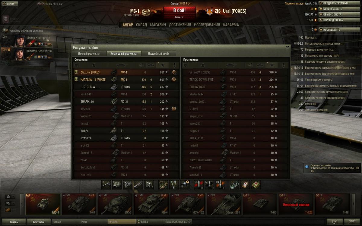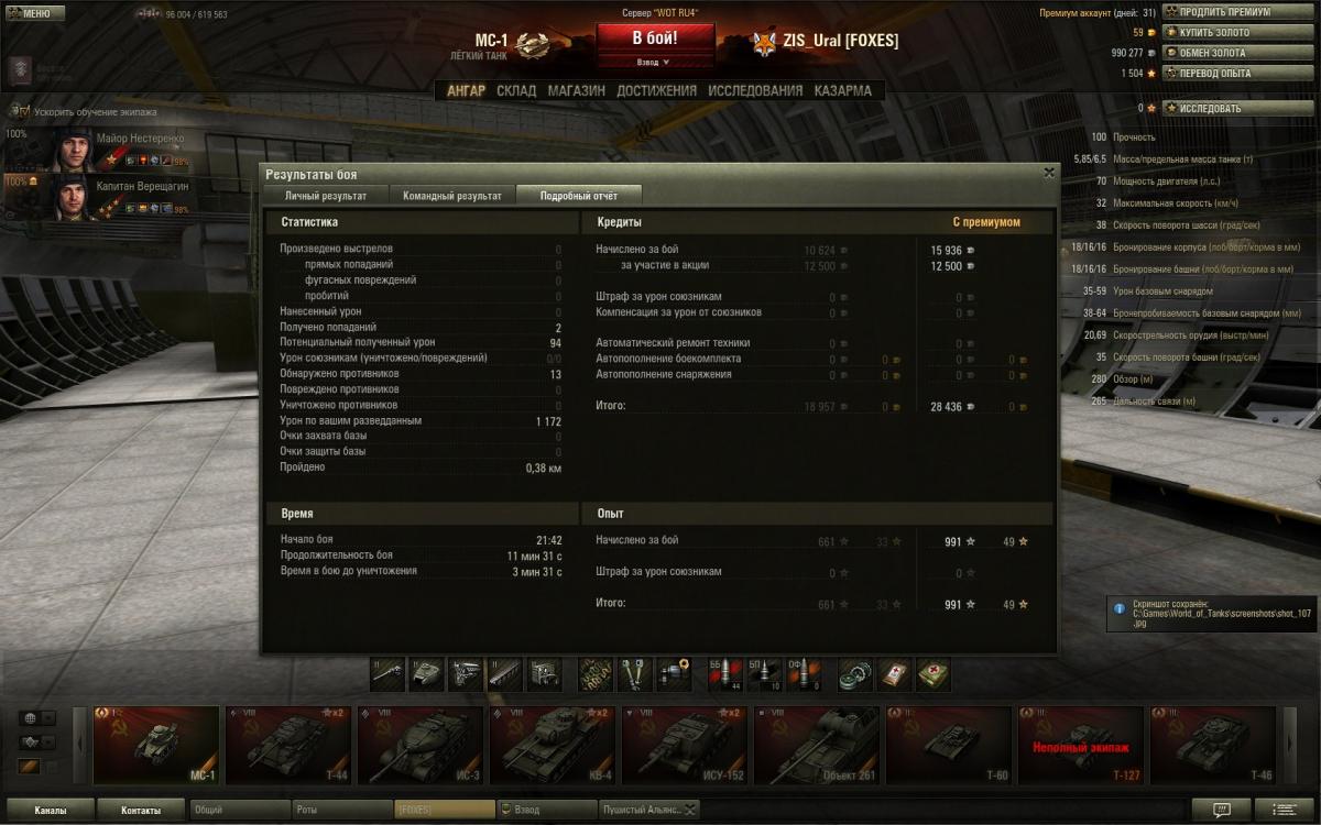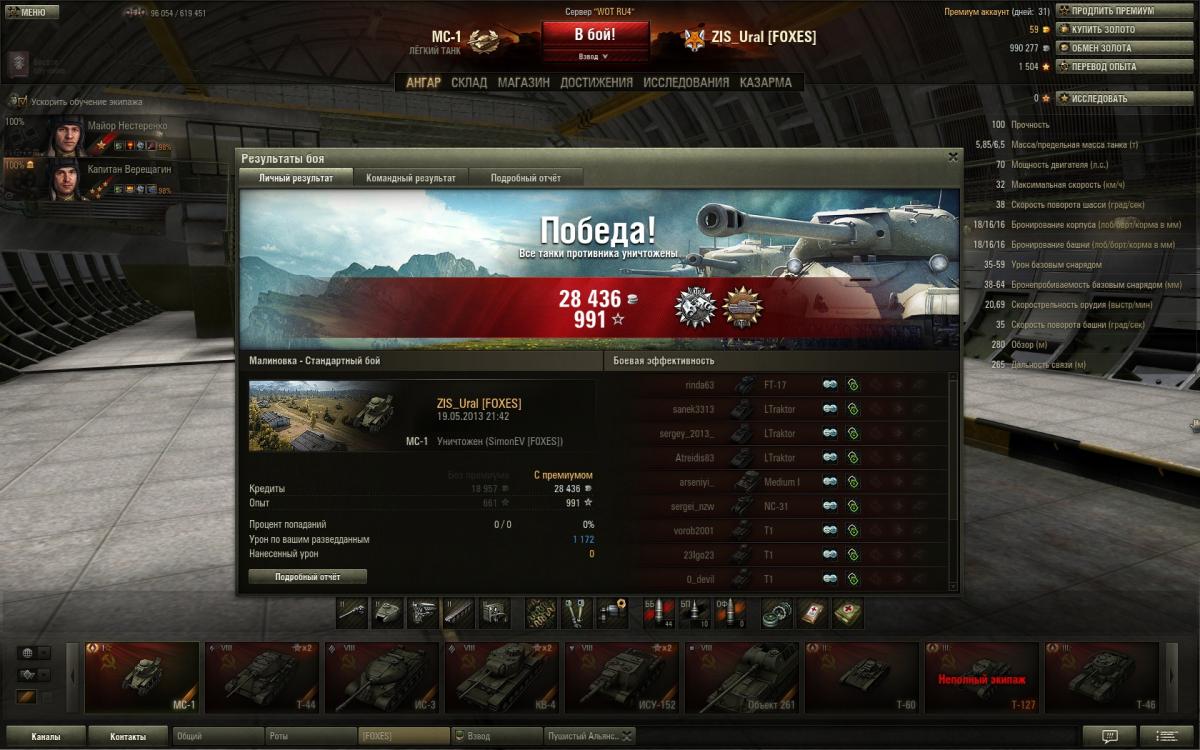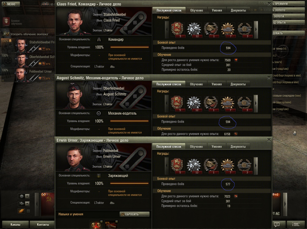 figvam_vsem131 Опубликовано: 21 мая, 2013 Игроки 983 публикации 36 678 боёв Поделиться Опубликовано: 21 мая, 2013 21 Май 2013 - 17:20 пользователь yurandrov сказал:Но "на скорость" наверно не влияет, сколько у кого из танкистов боёв на танке ? Разница не велика. При ускоренной прокачке всё равно мене прокаченому опыта больше отдают, догонит. У самого экипажи меняны переменяны, т.ч. отследить сложно. Склоняюсь, что за давностью лет, всё-таки поменял экипаж, в древних патчах, по моему, не было "высадить всех" при продаже - каждого танкиста персонально в казарму приглашать надо было. Сам по глупости в начале "истиных арийцев" пачками продавал вместе с танком, или кого- нибудь при продаже высадить "проморгал".А так , мехвода, первым делом к особисту на проверку.. вобщем-то, пофиг, просто интересно стало, почему количество боёв у командира и мехвода разное. Повторюсь, что никого и никогда не высаживал и не пересаживал. Всю технику, которая была мне подарена при регистрации, кроме МС-1, почти сразу продал, экипажи отпустил на дембель. Поскольку сразу решил что гонять буду только на технике СССР. Так что некуда мне было их высаживать-пересаживать. А те советские машины, что у меня сейчас есть, появились сравнительно недавно. Когда была акция по скидкам на премиумы, тогда и накупил их, сразу обучив экипажи в академии, правда толком так на них и не ездил. да совсем недавно купил Т-60 и тоже сразу качнул ему экипаж до 100%. короче - высадка экипажей с МС-1 исключается. Склерозом я не страдаю - это раз, и не было необходимости - это два.Здесь просили скрины личных дел экипажа МС-1? Пожалуйста:командир:Spoilerhttp://i48.fastpic.ru/big/2013/0521/e2/2265ab1b12540e9a5a0e3acb0ab247e2.jpg мехвод:Spoiler ВЕРНИТЕ "ПРОВИНЦИЮ" на 1 уровень и дайте первому уровню "Прохоровку!!!! Ссылка на комментарий