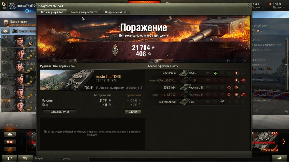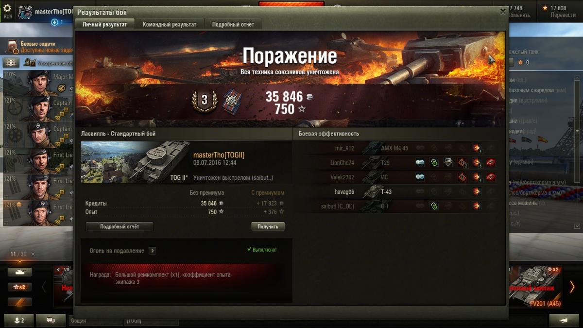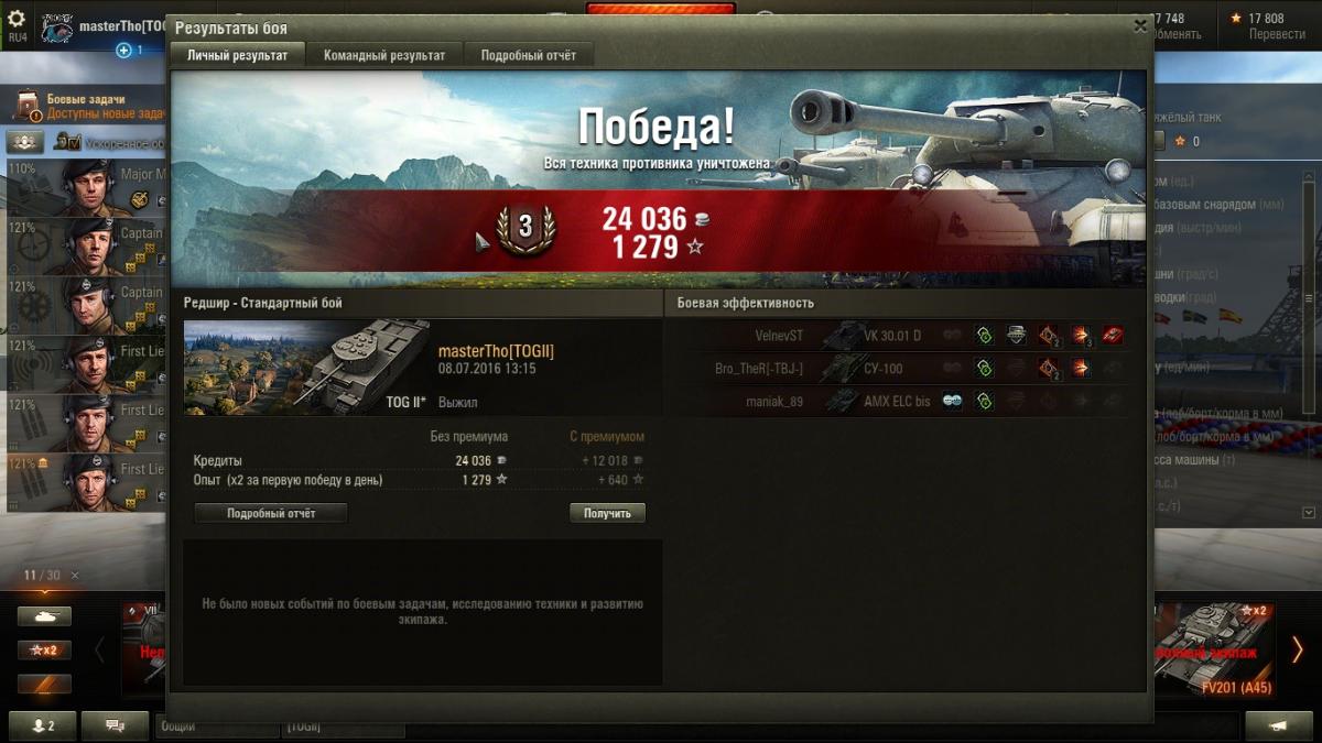 решил я пофармить на вк 45 03... Сначала шли одни турбопобеды... Я такой говорю - нафиг противник так сливает?! НАчались турбосливы... Я плюнул на это дело и сел на тога. Да, я хорошо покатал... но это были поражения. И тут, в самом конце - победа. Только, как всегда, так себе.