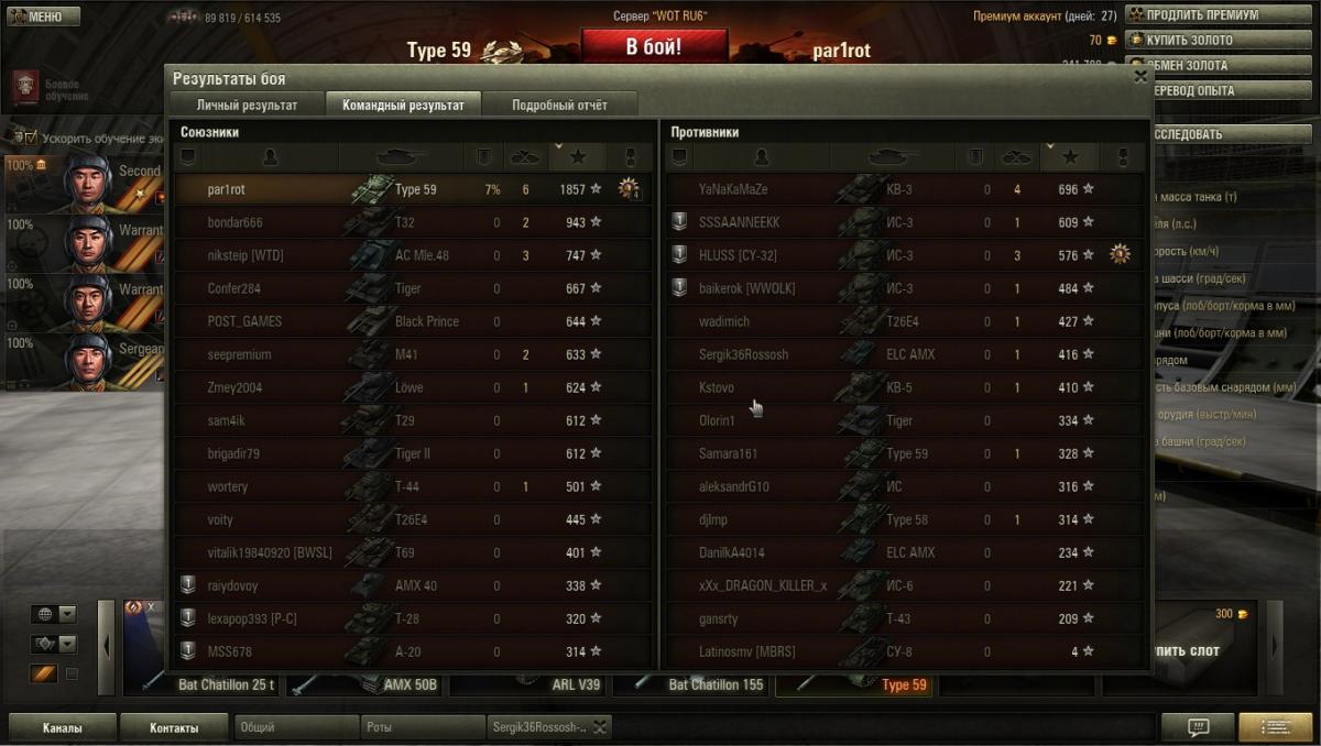 По поводу паранойи о скрытых нерфах очень понимаю владельцев 59 . Так как от той 59 которая продавалась  в первые дни , до нынешнего времени дошла разве что оболочка , танк не имеет и 50% той огневой мощи и рикошетности аппарата за который я и многие другие отдавали деньги ).  На мой взгляд на нынешний момент Тайп 59 является менее сильным аналогом 44 , но имхо для премиум танка это печально ). В целом хочу сказать что на мой субъективный взгляд танк и правда стал приносить меньше серебра и боеуклад как то часто критует ( в последнее время 2 подряд крита боеукладки меня уже не удивляют) .Вот как то так . Так что прекращайте орать о имбовости Тайпа и идите в тему суперпершингов пускай лучше им экраны порежут  :Smile_trollface-3: