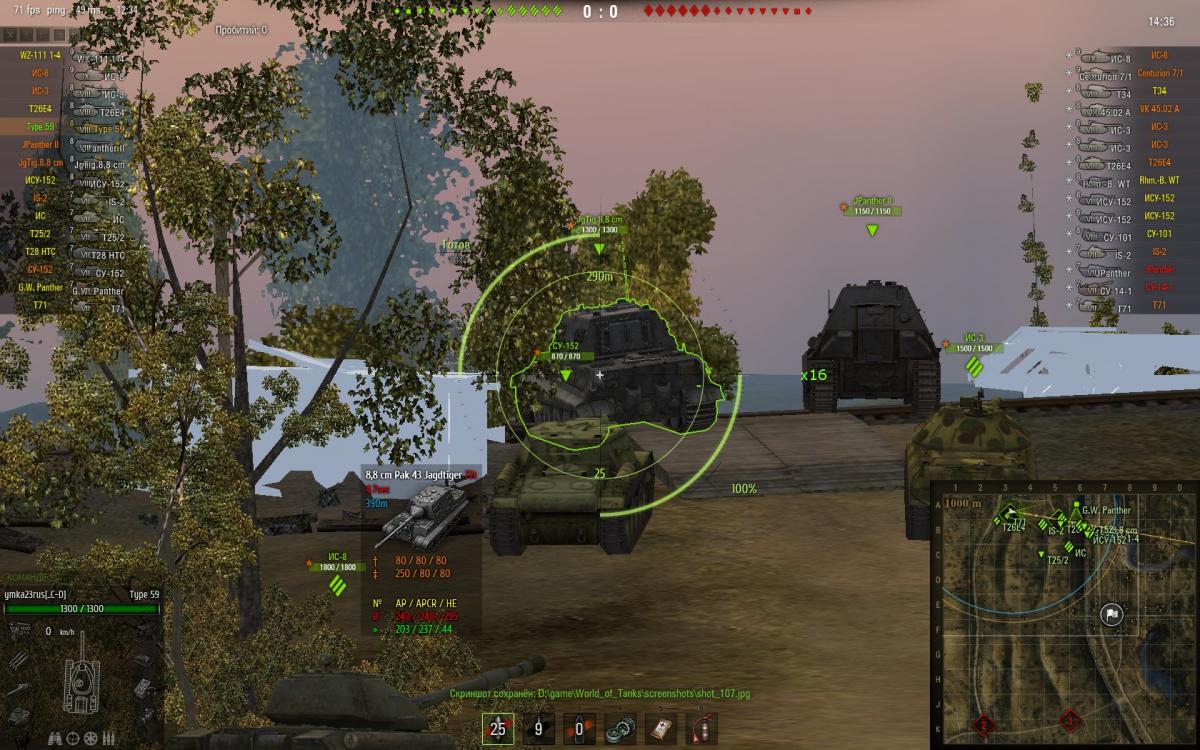 59ка очень чоткий. Я на нём играл постольку поскольку, но щас, когда открыл 4-й перк он аж запел. Главное не пытаться ПТшить, а чаще менять позиции и каруселить. Досыл убрал, вместо него оптику поставил к стабу и вентилю. Я посчитал что досыл уменьшают время перезарядки не более чем на 40 мсек, то есть менее чем полсекунды. Вобще досыл нужен там где 5 и менее выстрелов в минуту, тогда % что-то даёт, равно как и привода дают ощутимый результат когда сведение 2.9 и более. А то что броня в корпусе не супер - ну он скоростной зато, бронёй не потанкуешь, а вот обратным ромбом можно, но эт оне его - его козырь - скорость и внезапность. Кстати рекомендую таран качать у водителя.