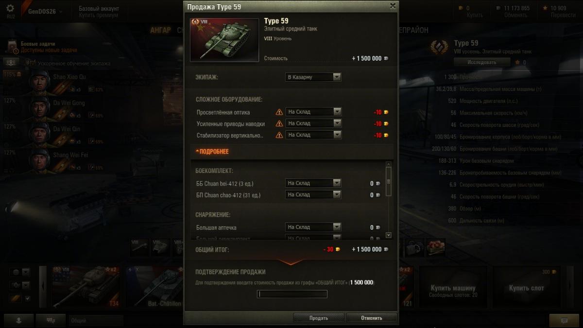 • Всё равно Тип 59 будет собирать пыль в моём ангаре.