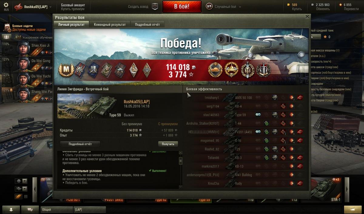 • Теперь Тип 59 получил то, что нужно. Играть стало гораздо комфортней. Доволен как слон.