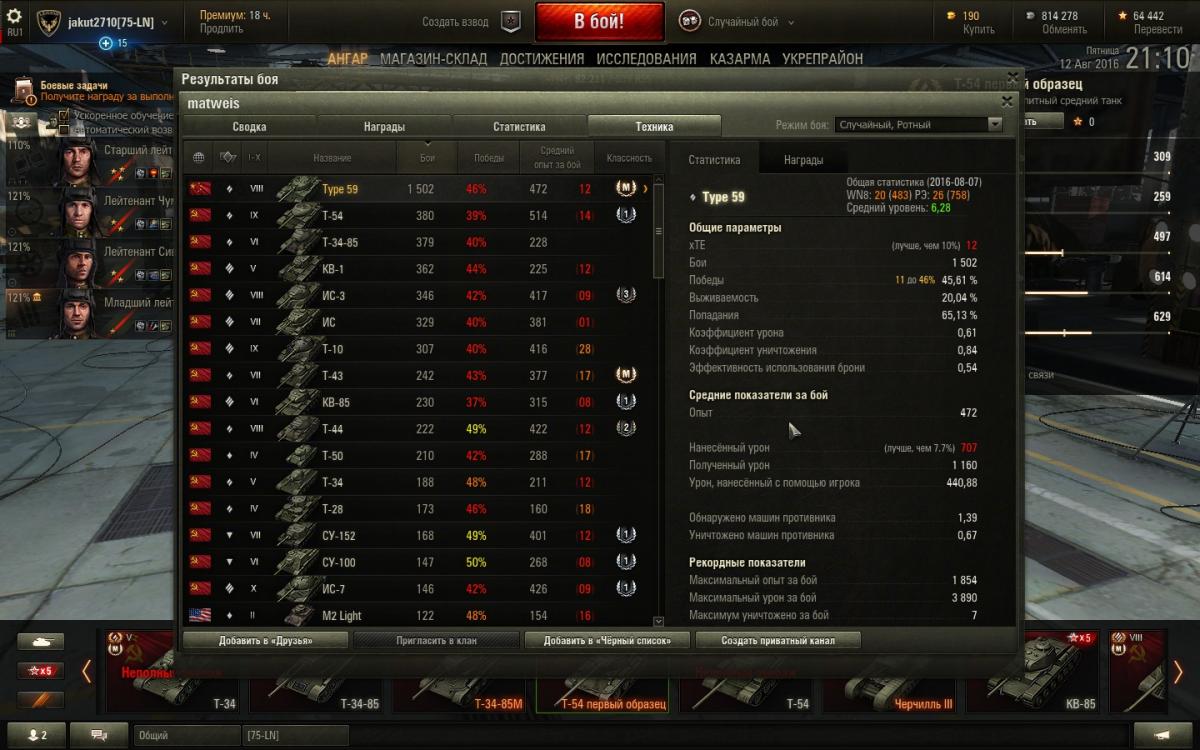 5) Сравнил твою стату со своей. Твоя лучше, но ненамного (как и писал раньше за счет взводных боев).
