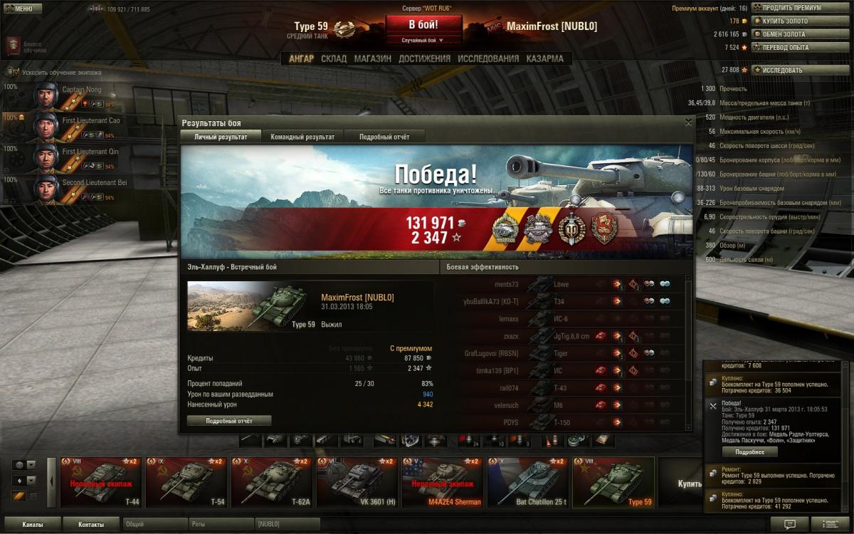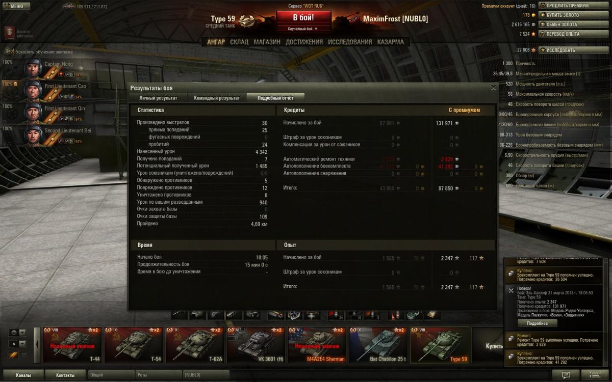 • Всё равно Тип 59 будет собирать пыль в моём ангаре