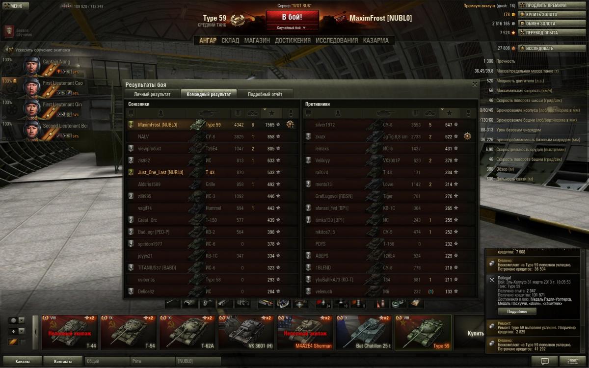 • Теперь Тип 59 получил то, что нужно. Играть стало гораздо комфортней. Доволен как слон.