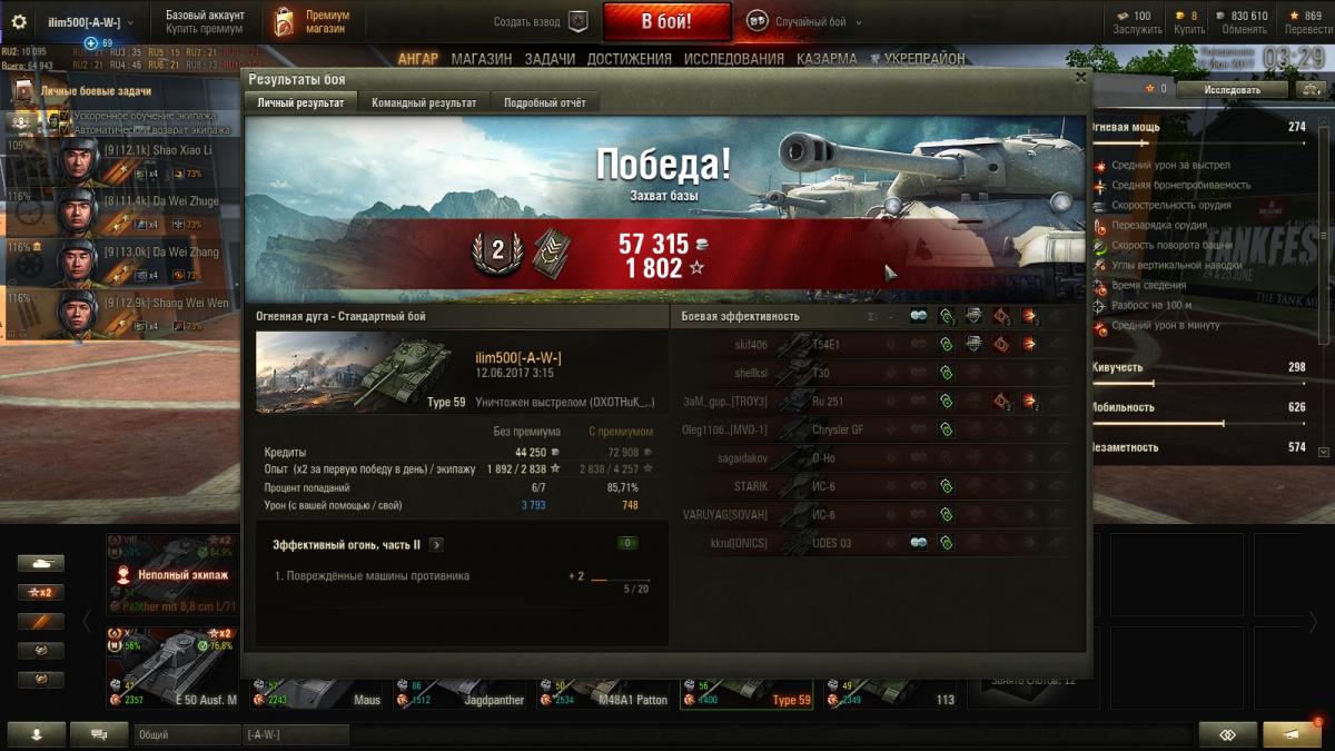 Апните этому танку стабилизацию и сведение и всё. Этого хватит, чтобы хотя бы попадать. Сегодня на о-ни видел тайпа, бой был на перевале, я поехал на центр, т.к. тяжей было много, в том числе 2 топовых, да и расчёт был на то, что на центре будет пара скорпионовГэ, тем более, что наш т37 поехал светить центр. Скорпионы там нашлись, одному я даже прислал првивет на 928 хэпулек, но суть не в этом. Там, за камнем, стоял тип59, попавший по стечению обстоятельств в топ 5-10. Он стрелял по мне 4 раза пока я кдешился на гусельке после непробития от СкорпаГэ, которые мне эту самую гусельку и сбил. Когда он промахнулся третий раз подряд (в О-Ни, Карл, он промахнулся 3 раза подряд в О-Ни!) я просто довернул морду и танканул его четвёртый выстрел. Вывод: такое косое орудие я видел только на парочке танков, это ста-1 и т34. Постоянные недолёты и перелёты, попадания в рикошетные и непробиваемые зоны и пр.пр.пр. Видимо тайп этого игрока страдает чем то подобным, промахнуться 3 раза подряд в гроб, который стоит ещё и ромбом, т.е. площадь танка в прицеле ещё больше.... извините конечно, но даже если бы сейчас тайп59 ввели в клиент за голду я бы не позарился. Зачем мне ещё один т34-2? Спасибо, поиграл, продал, забыл.