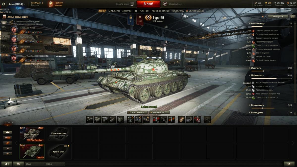Туре 59 на полном фарше, с 5+ умениями экипажа и "голый" Т25 Пилот 1 :facepalm:
