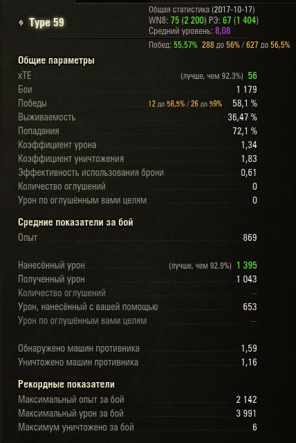 ну с тем что надо собрать статистику не давно я писал. примерно пару страниц назад. падч уже вышел и не кто не будет что то окатывать или исправлять. придется собирать статистику. что касается вашего второго сообщения. я не могу понять одного как может человек о чем то рассуждать если он на технике не играет?  .игрок  AlkisTer  не гирает на типе примерно 5 лет. это приблизительно 2011 год.  вот вы мне ответьте  пожалуйста. почему я должен как то доверять его мнению? да у него не плохая стата, но тем не мение. в игре произошли изменения. даже можно сказать очешь много. они повлияли как на танки по отдельности так и на ветки танков и тп. как он может судить не  играя на танке как он себя чувствует в бою? что для него хорошо? а что не  очень? а тем более уверено говорить что это так? я его обвинил  в пусто звонстве именно из за того что человек не знает предмет о чем он говорит. да у него есть достижения, но они были сделаны в 2011 году. можно сказать когда танк был на высоте. что с танком  сейчас знают люди которые его катают именно сейчас.  не балаболы рассказывающие сказки о том что танк легенда и ИМбиЩа. надо быть по крайней мере более объективными. Согласны? действительно надо собрать статистику по танку. потому что сейчас ни кто ни чего менять не будет.