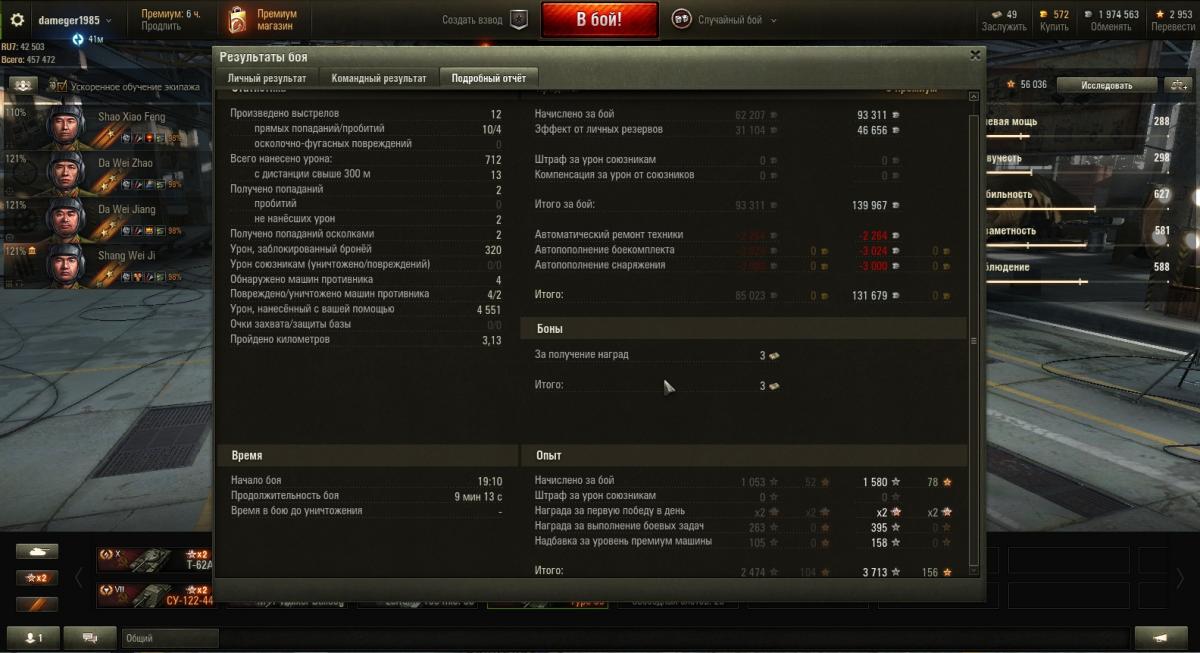 Получено опыта: 3 713 (x2 за первую победу в день)