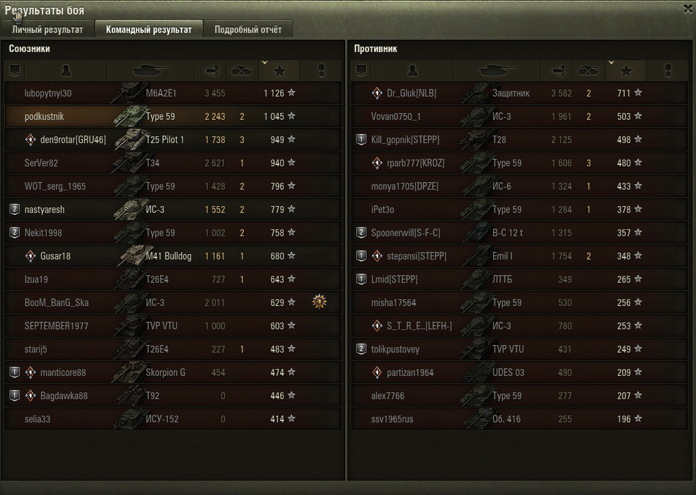 итог боя на скрине