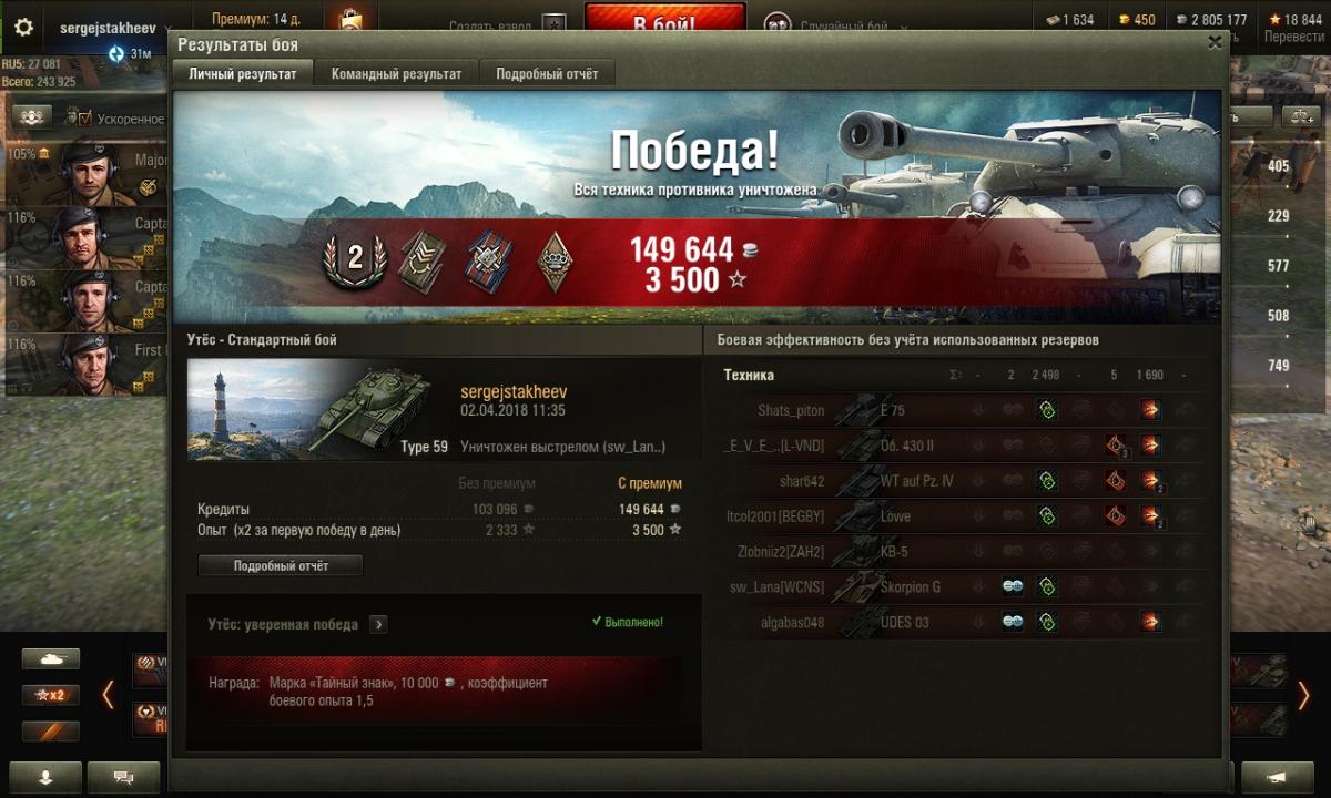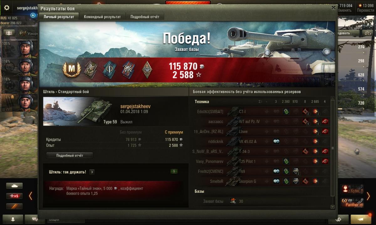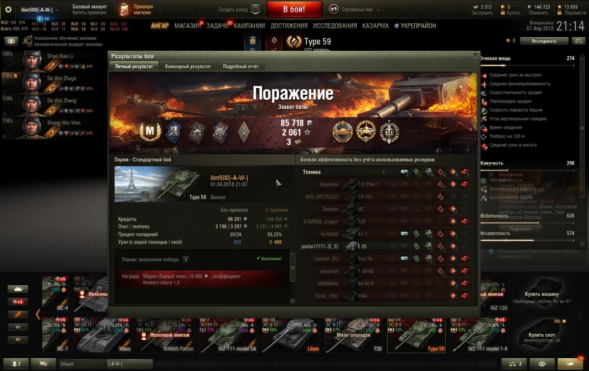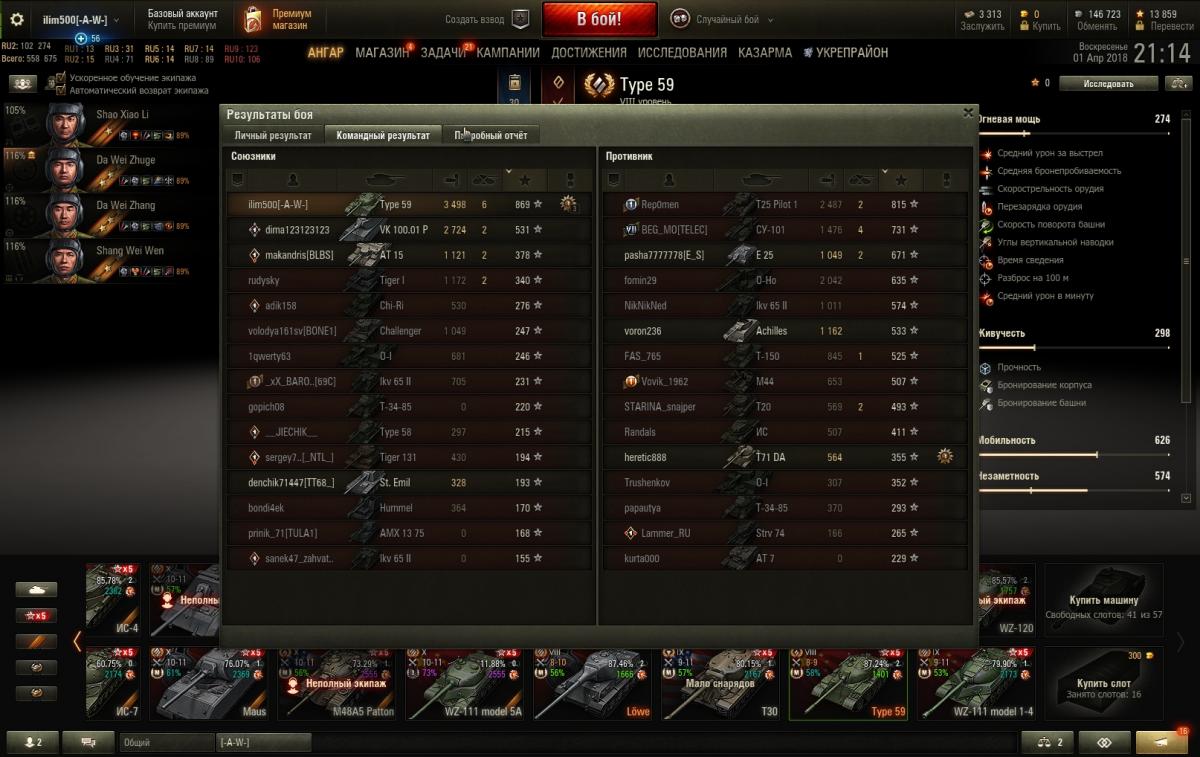 А так я бы с удовольствием поменял 59 на Т-34-3 с хорошей альфой. Платят за настрел, а не за свет нубосоюзникам. А с настрелом у 59 не очень. По крайней мере у моего.