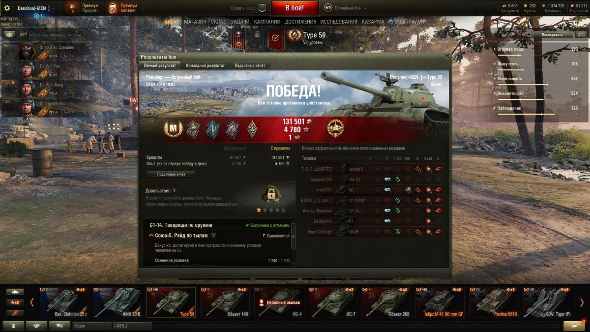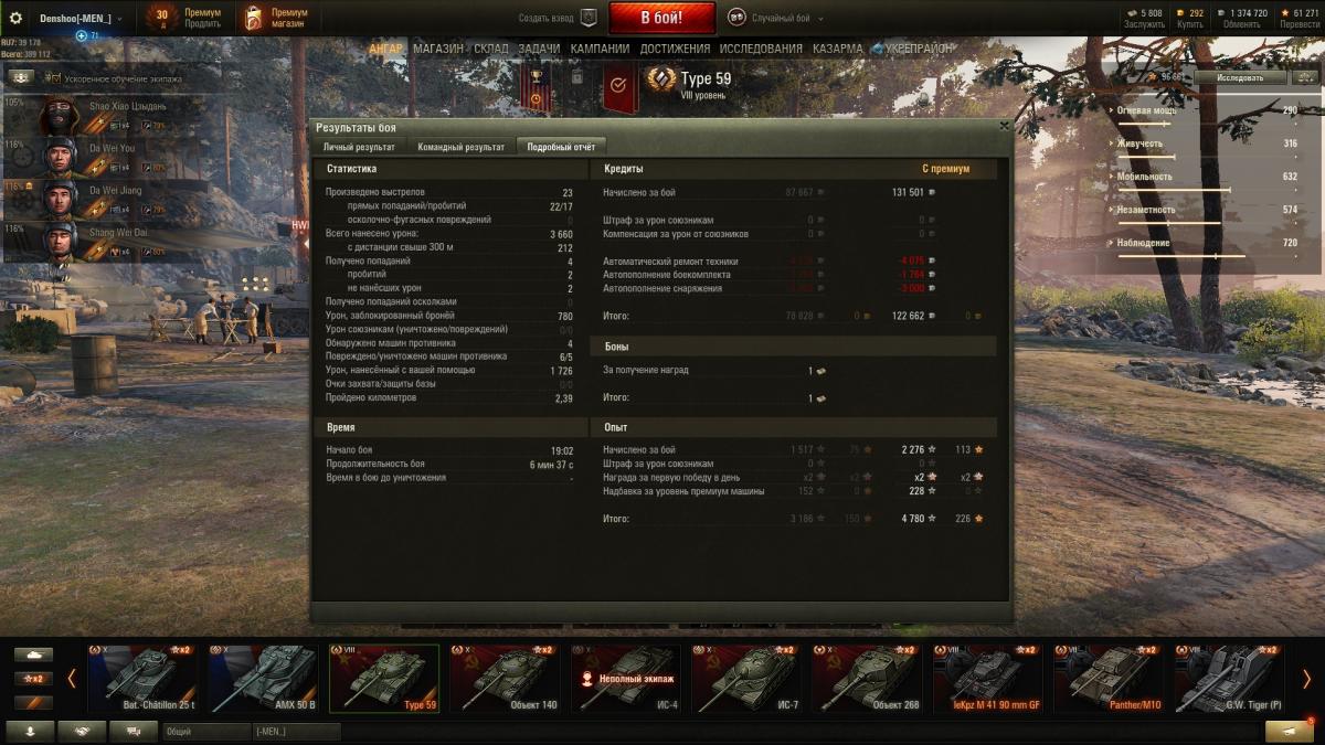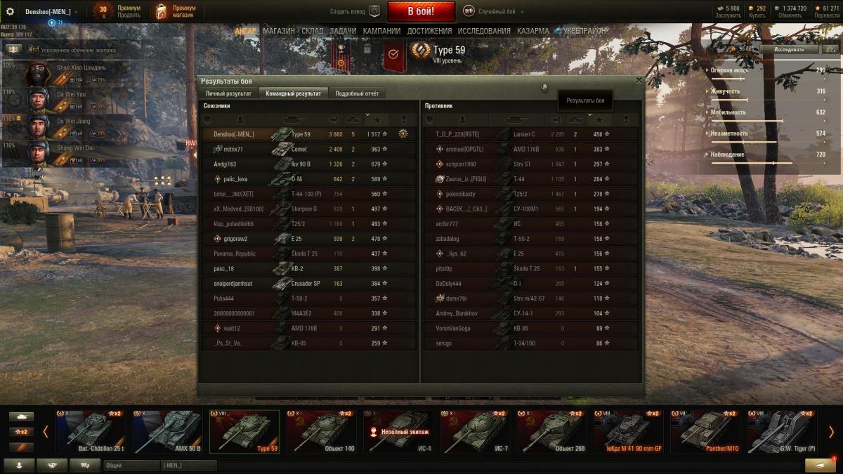 Добавлю пост. Так как я играю после долгого перерыва, то мне все интересно и танк нравится!) И кстати сейчас в рандоме Тип 59 явно недооценен противниками.