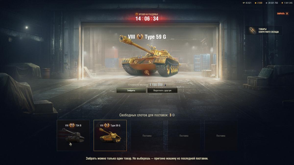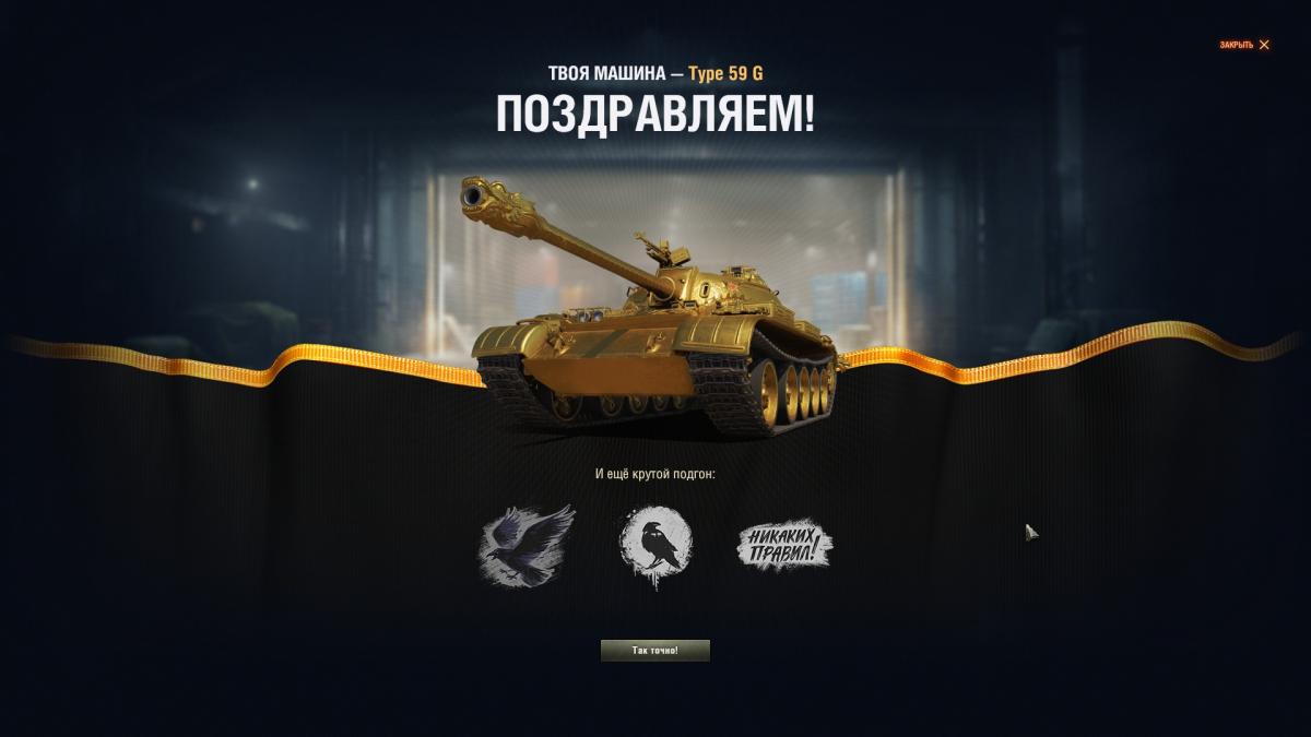 В этом случае я вижу что каждый игрок может за смешные 5к голд купить ключик от кейса, где можно с шансов 1 к 22 (минимум) 5 раз попробовать выбить ТИП59г и этого достаточно что бы сказать что это убьет редкость и ценность этого танка как коллекционного образца.