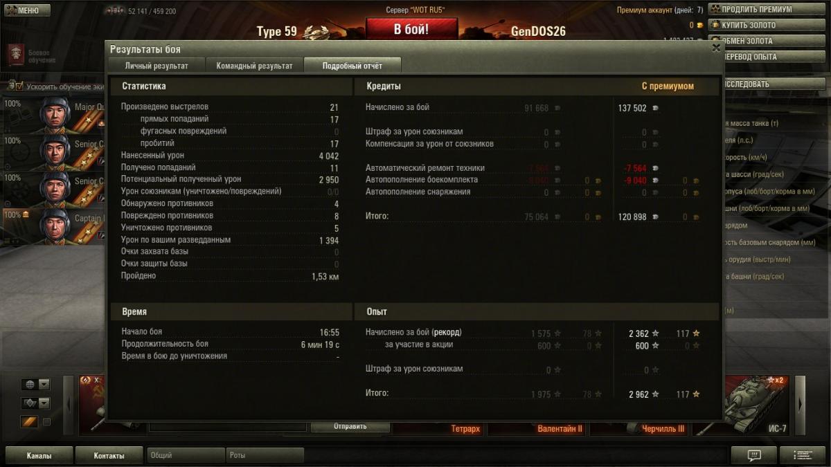 Ух, отличный бой сейчас был. С досылателем, доп.пайком, вентилятором и навыком отчаянный (осталось 117хп) стрелял наверное как Т-62А